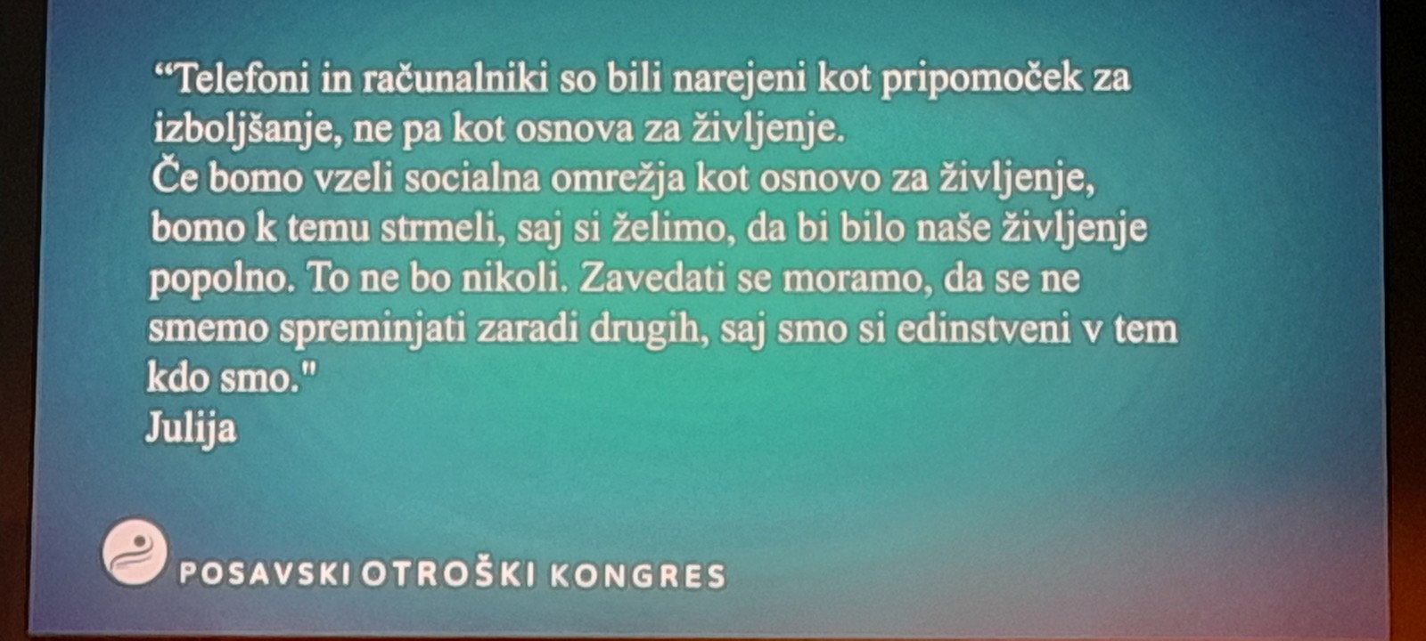 Iz naše šole se je kongresa udeležila učenka Ina Furar iz 7. a razreda, ki je lansko leto sodelovala na občinskem otroškem parlamentu.