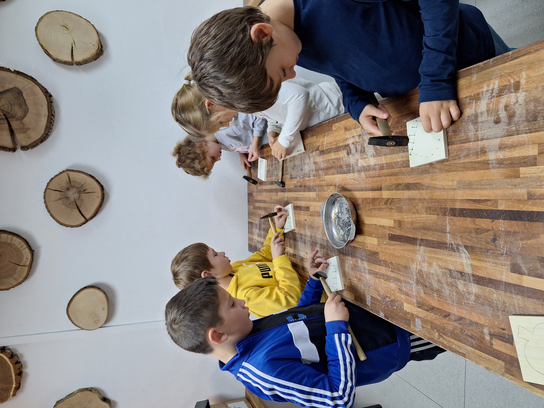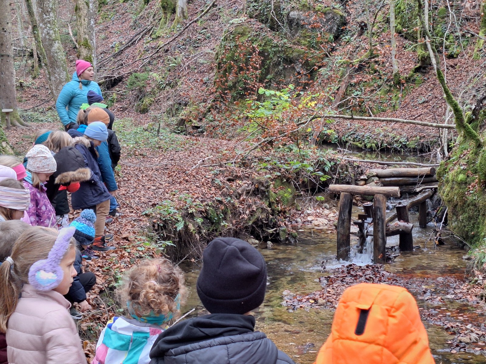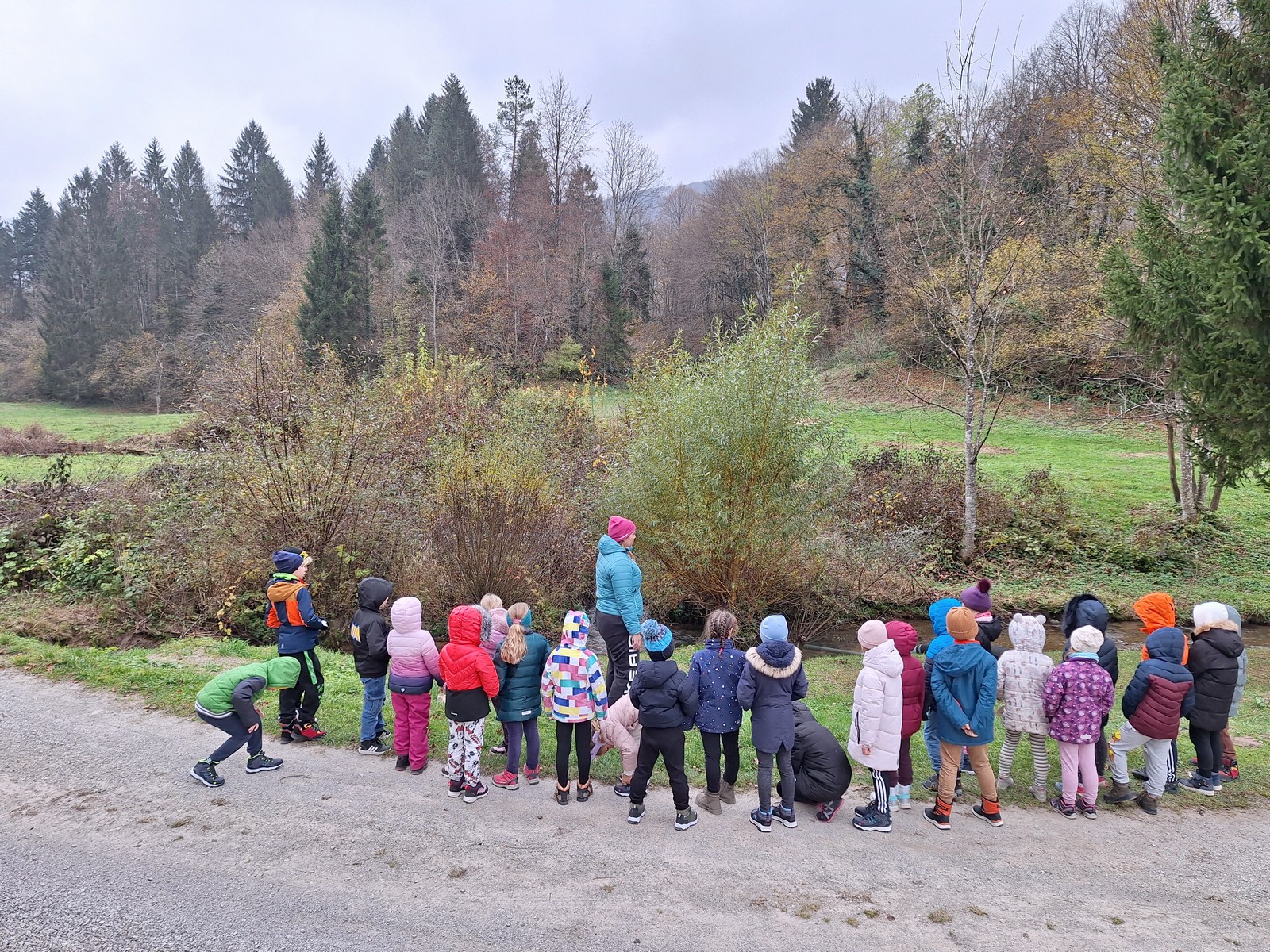 Po dobrem kosilu smo se odpravili na učno pot Divji potok ter žebljali lipov list.