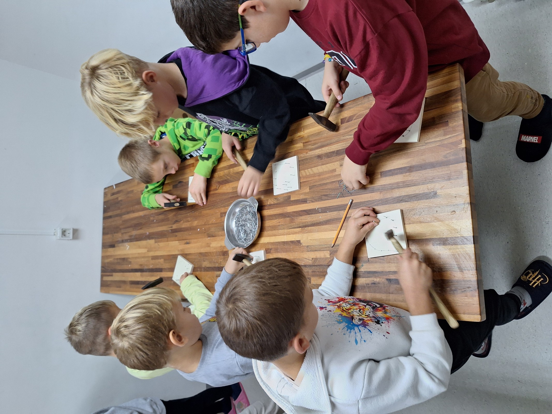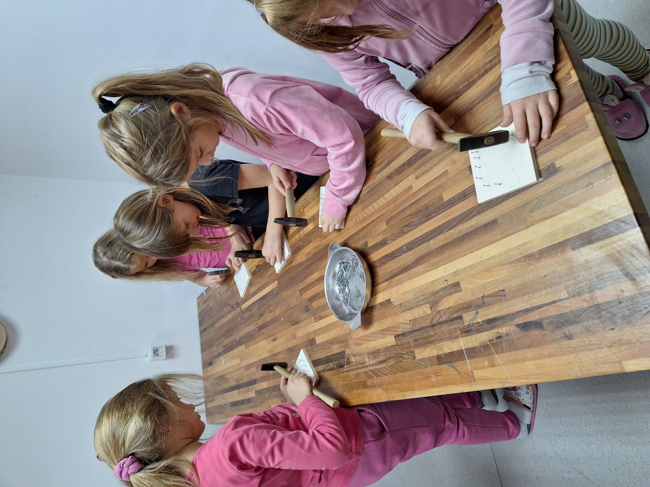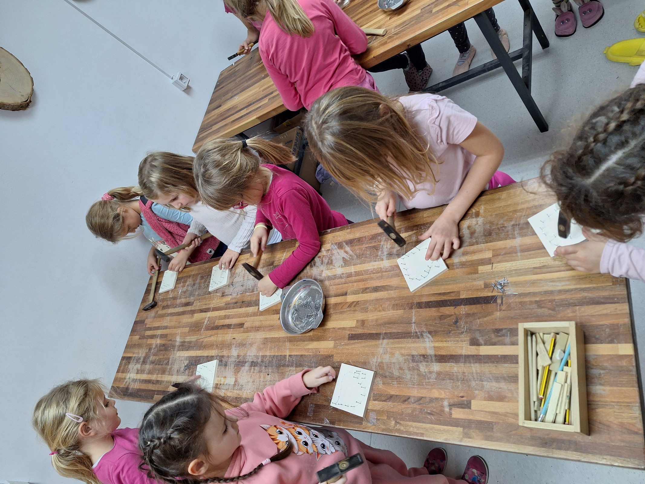 Po dobrem kosilu smo se odpravili na učno pot Divji potok ter žebljali lipov list.