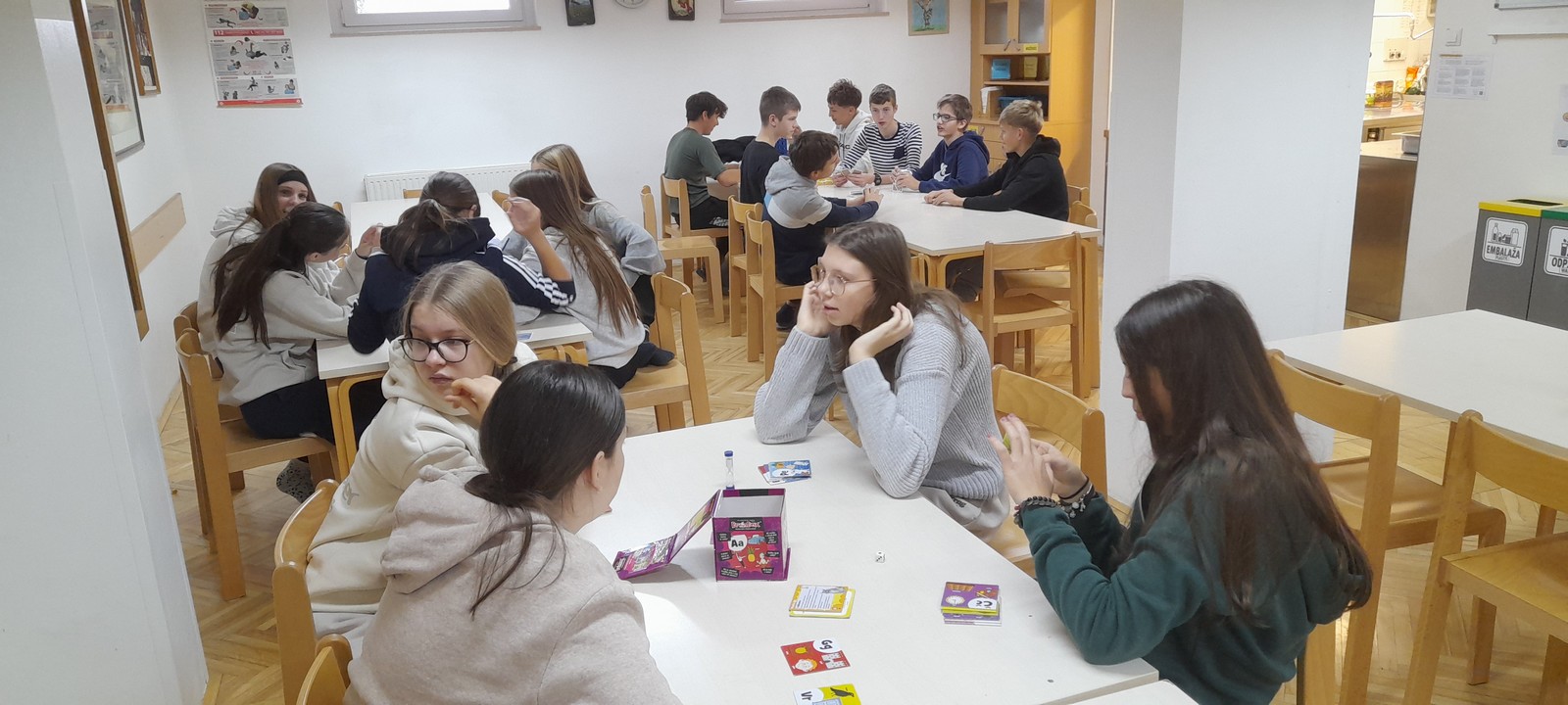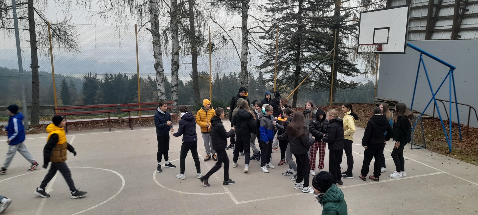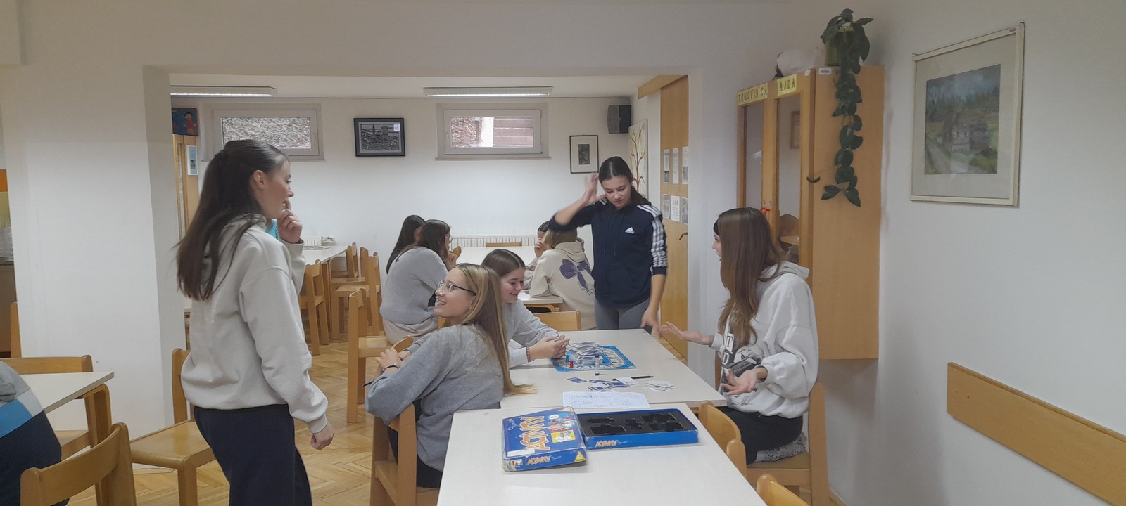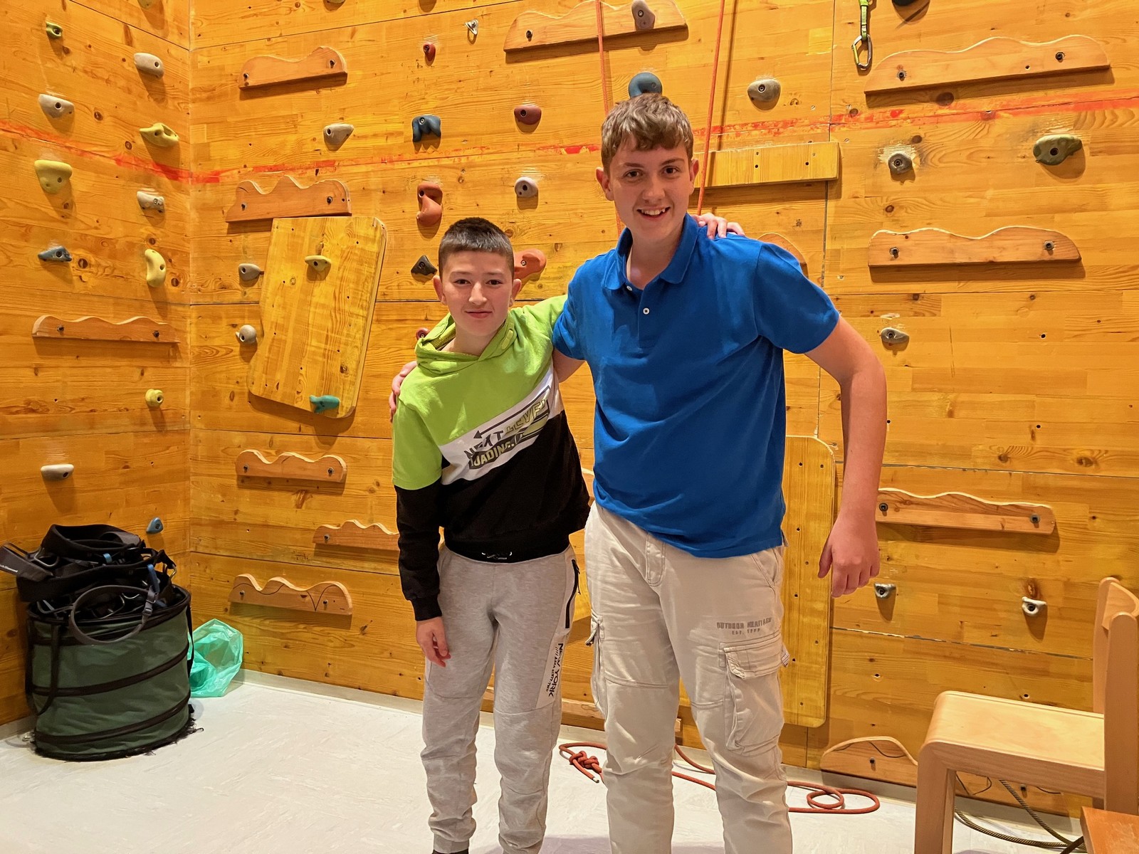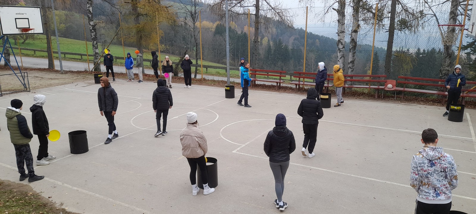 Na igrišču smo imeli družabne igre, v domu pa smo plezali po plezalni steni.