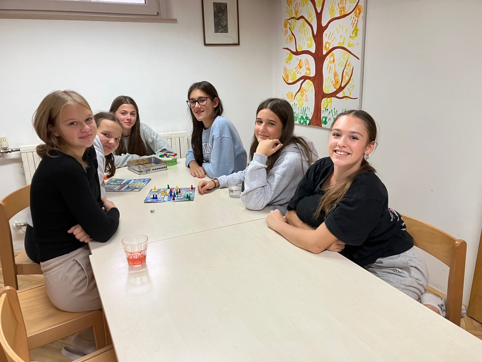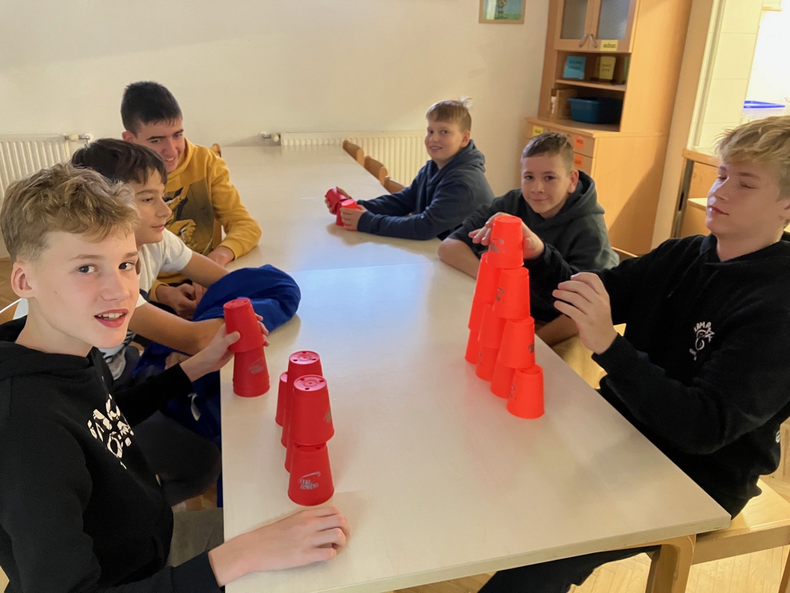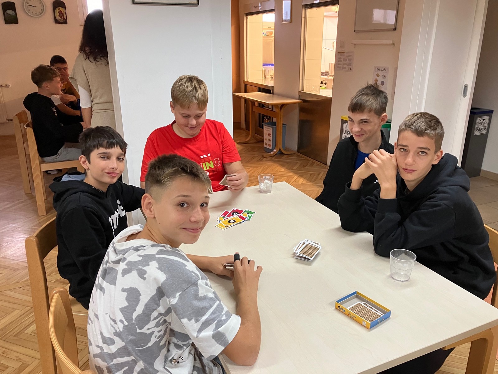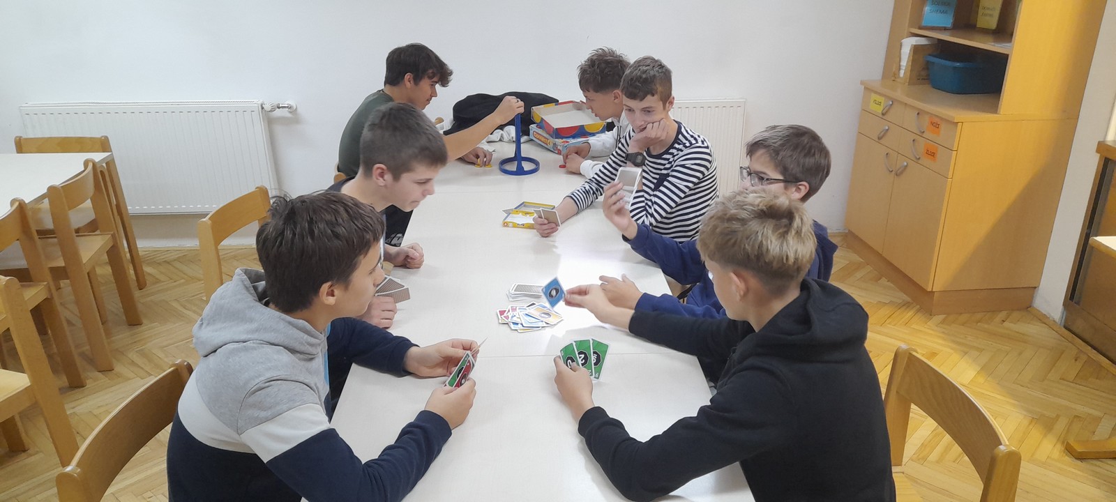 Na igrišču smo imeli družabne igre, v domu pa smo plezali po plezalni steni.