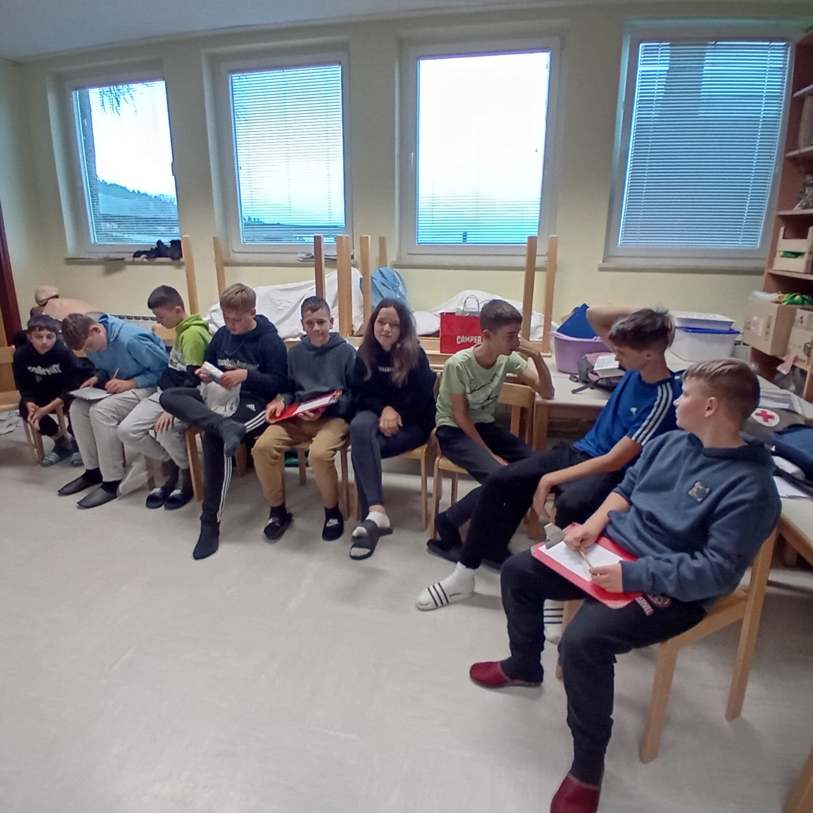 Po zajtrku so se nadaljevala predavanja o prvi pomoči. Danes smo spoznavali ozebline, opekline, omrzline ter transport ponesrečenca.