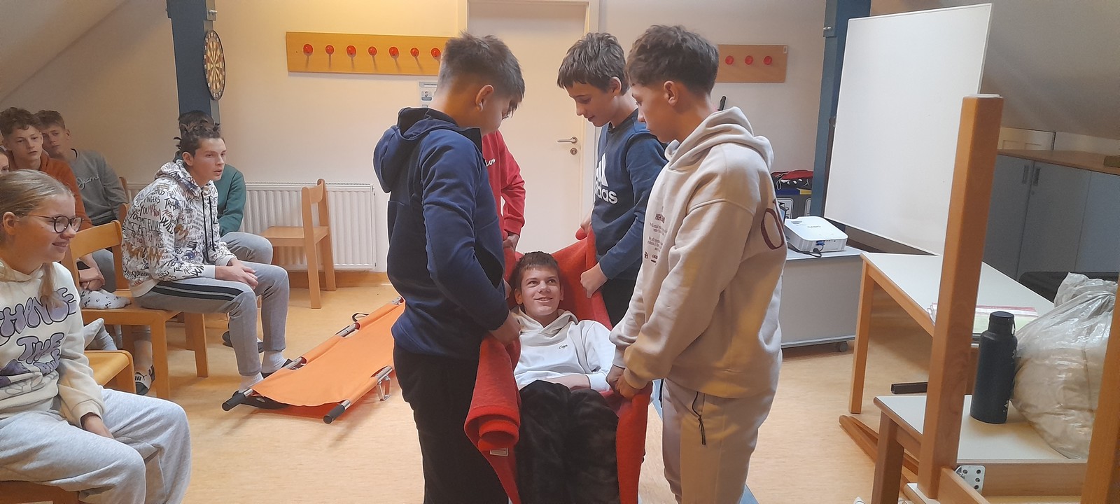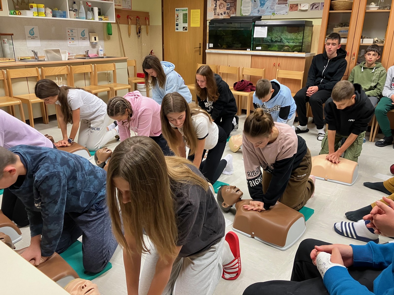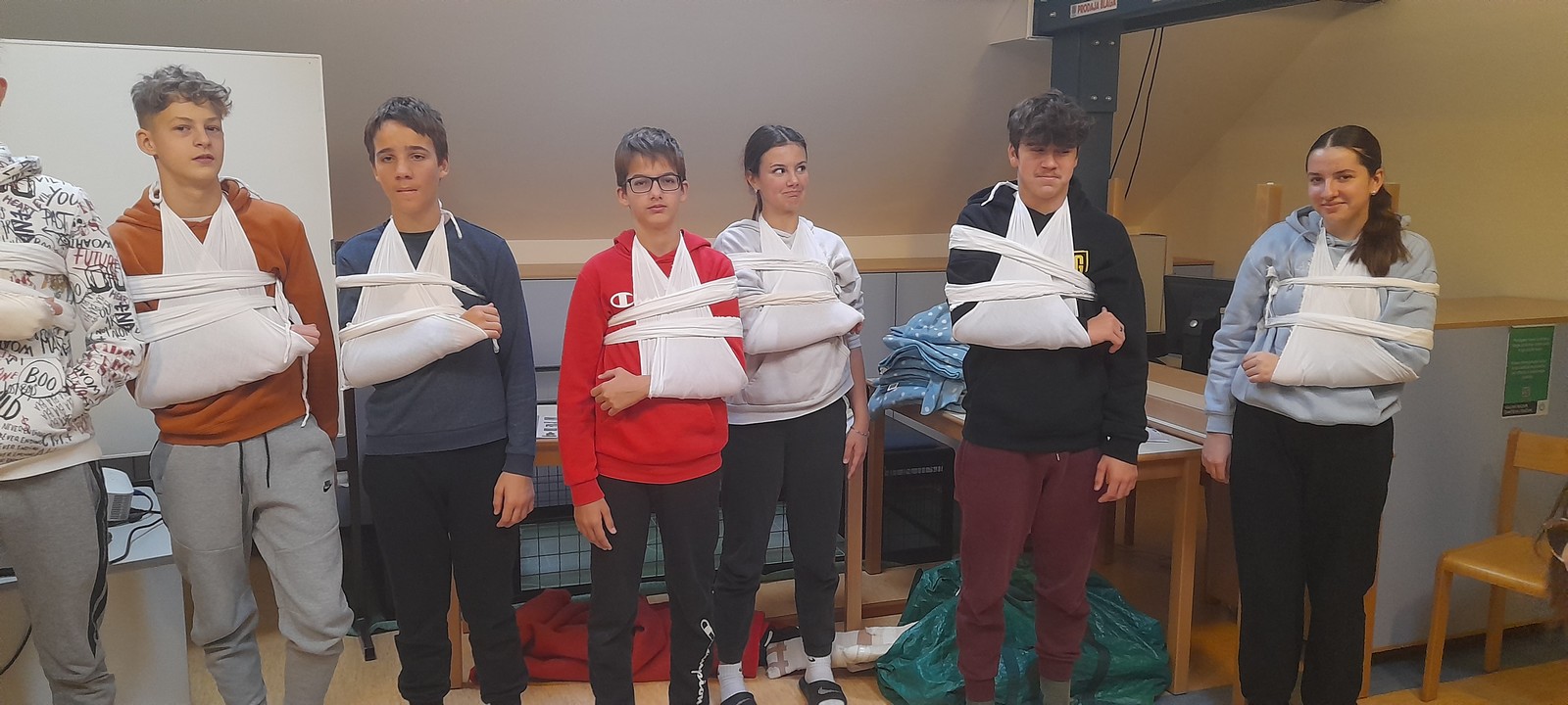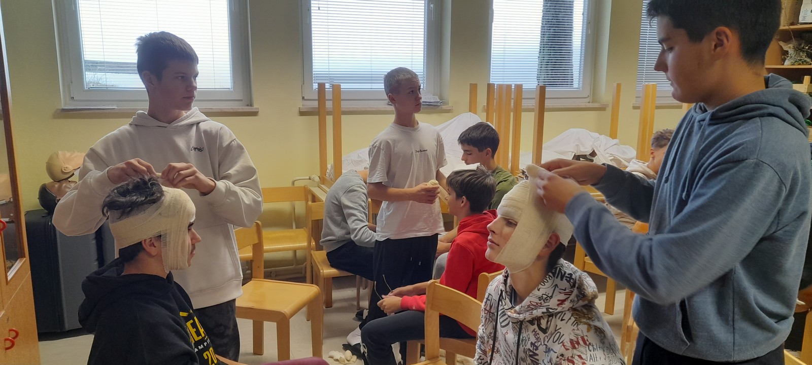 Dopoldanski del je bil namenjen spoznavanju pikov, ugrizov, oskrbovanju ran, transportu ponesrečencev. Popoldan smo se odpravili ven na orientacijski pohod. Gibali smo se po slovensko - avstrijski meji ... z eno nogo smo bili v Sloveniji, z drugo v Avstriji. Polja in travniki, ki smo jih videli pod sabo, so že v Avstriji.