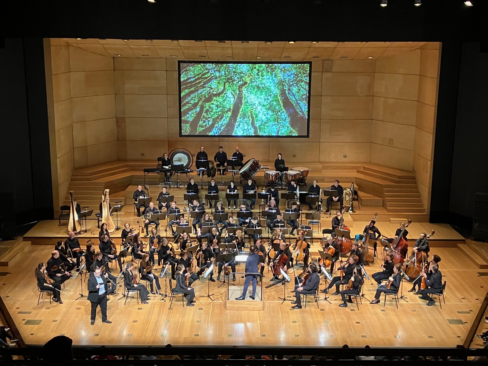 Najprej smo v polni Gallusovi dvorani Cankarjevega doma prisluhnili koncertu Narava v simfonični glasbi v izvedbi simfoničnega orkestra pod vodstvom Simona Dvoršaka. Koncert je humorno povezoval Juš Milčinski.