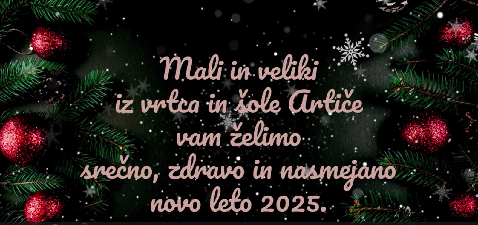 Mali in veliki iz vrtca in šole Artiče vam želimo srečno, zdravo in nasmejano novo leto 2025.