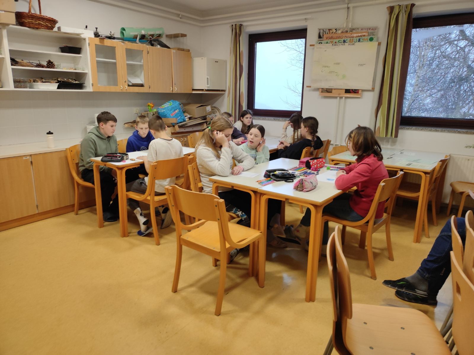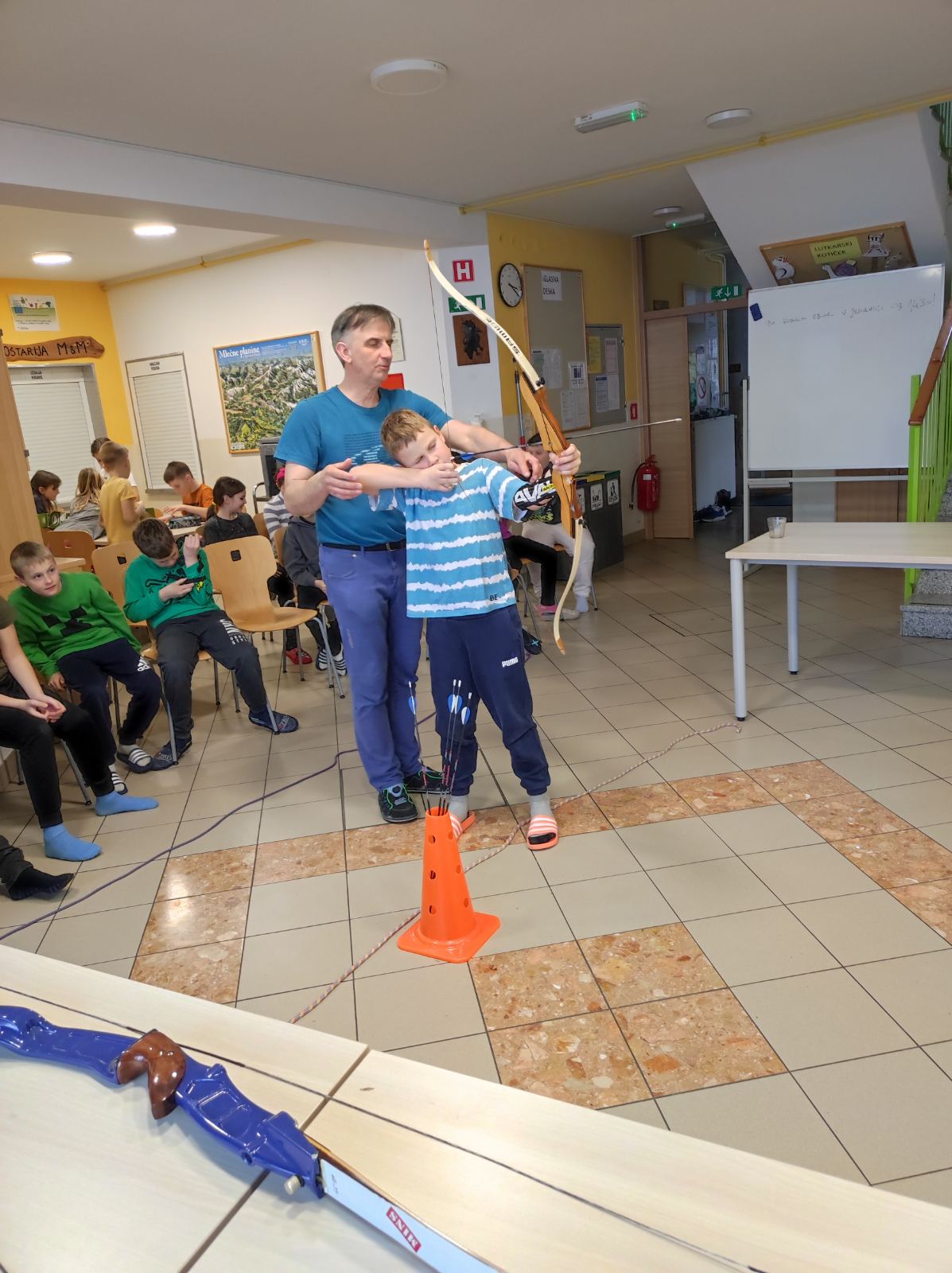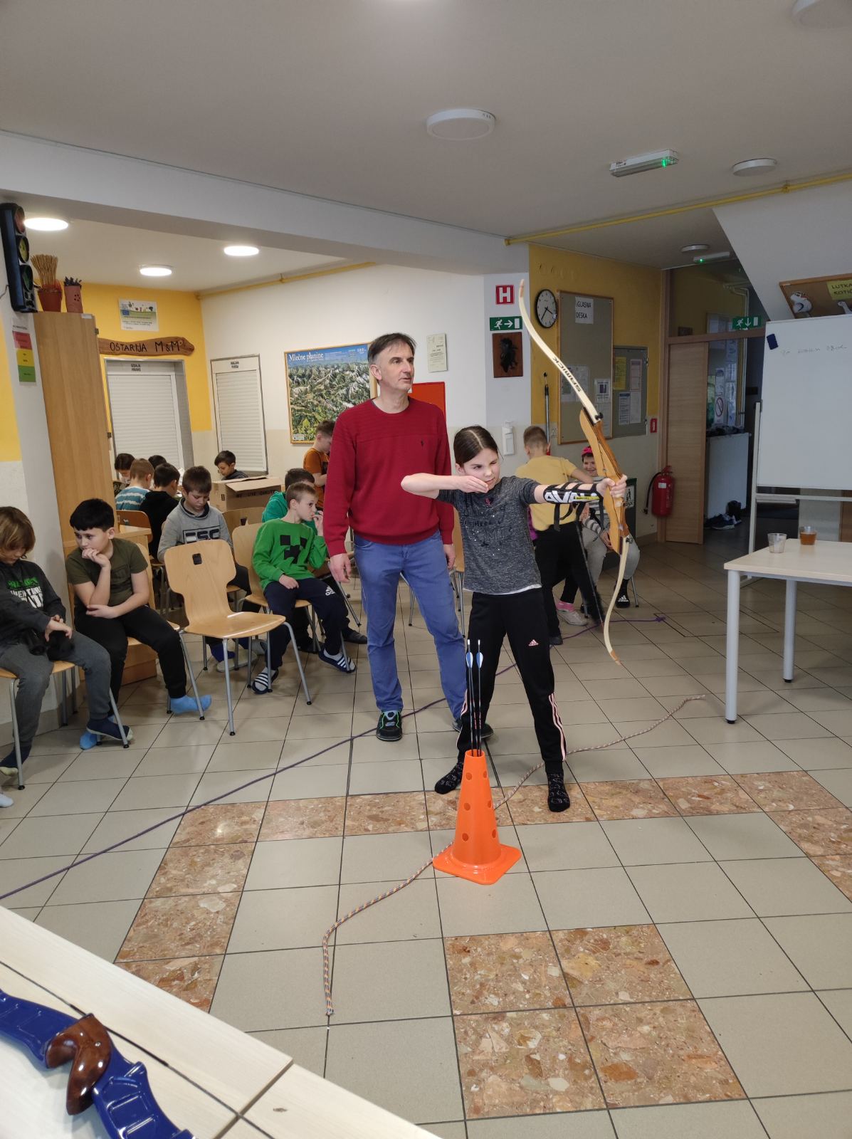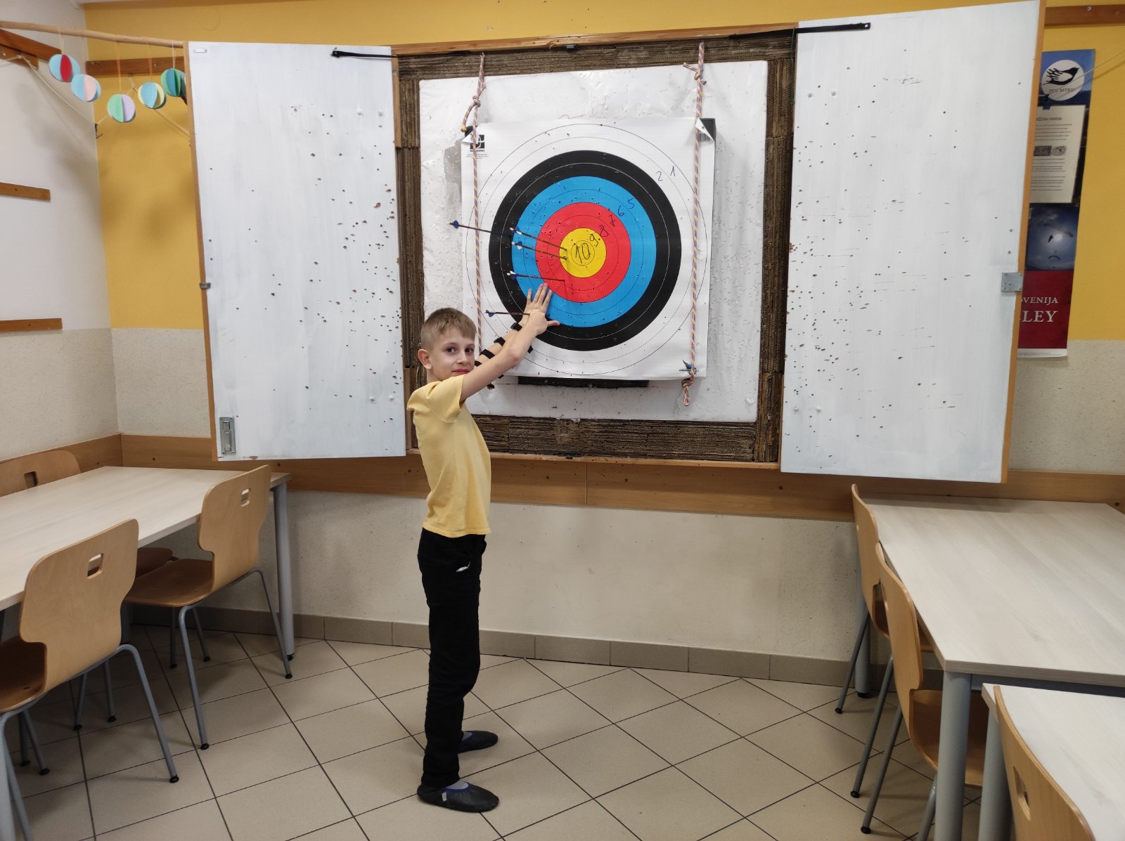 Popoldne smo tokrat sedmošolci ustvarjali zgodbe o onesnaževanju okolja za gledališče kamišibaj, četrtošolci pa spoznali osnove lokostrelstva. Ob koncu smo izvedli tekmovanje, kjer so se kot najbolj natančni strelci v sredino tarče izkazali Luka, Matic in Kaja.