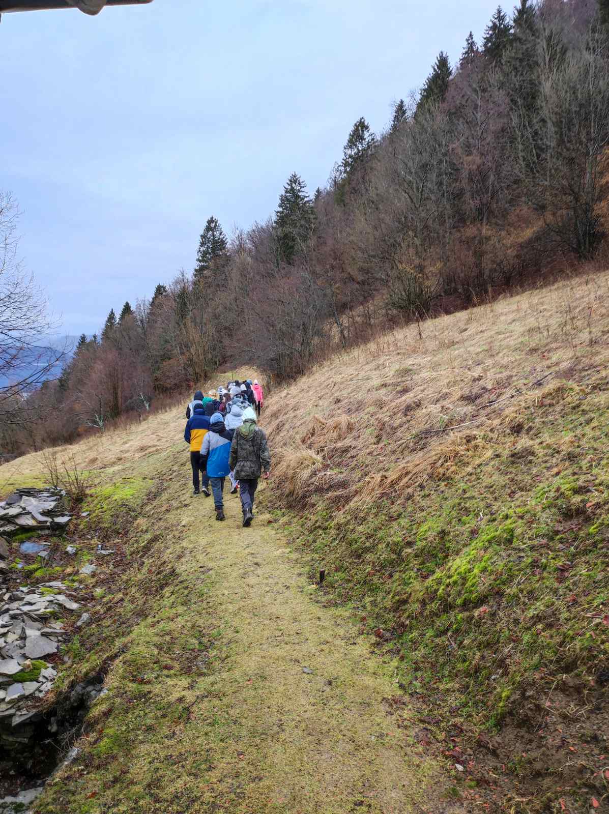 Dejavnosti smo skozi ves dan opravljali razdeljeni v 2 skupini. Dopoldne smo izmenično pripravljali štruklje za večerjo in raziskovali sledi živali v gozdu. Ugotovili smo, da se okoli doma redno sprehajajo divje svinje, srne, zajci in celo jazbeci. Učiteljica Mojca nam je zelo natančno razložila in pokazala, kako smrekov lubadar postopoma uničuje smreke.