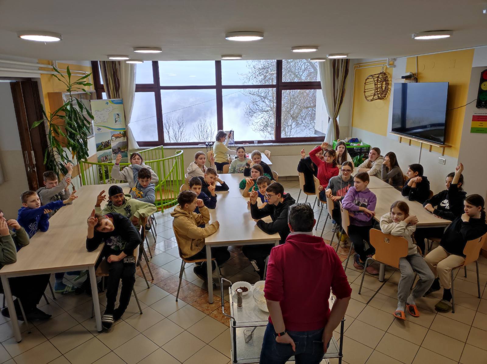 Polnih želodčkov smo se pripravili na predstavitev zgodb o onesnaževanju okolja za gledališče kamišibaj. Z nekaj zdrave mere treme tako pred starejšimi kot tudi pred mlajšimi gledalci smo odigrali zgodbe z ekološko problematiko in vilami Krivopetami, ki so vedno poskrbele za srečen konec. Večer smo zaključili s simpatičnimi povezovalnimi igricami, ki so poskrbele za krepko dozo smeha.