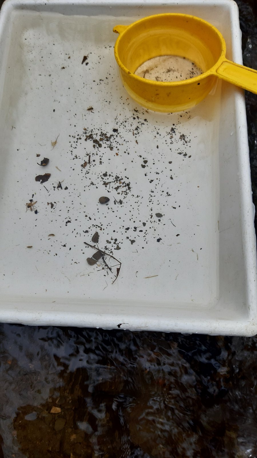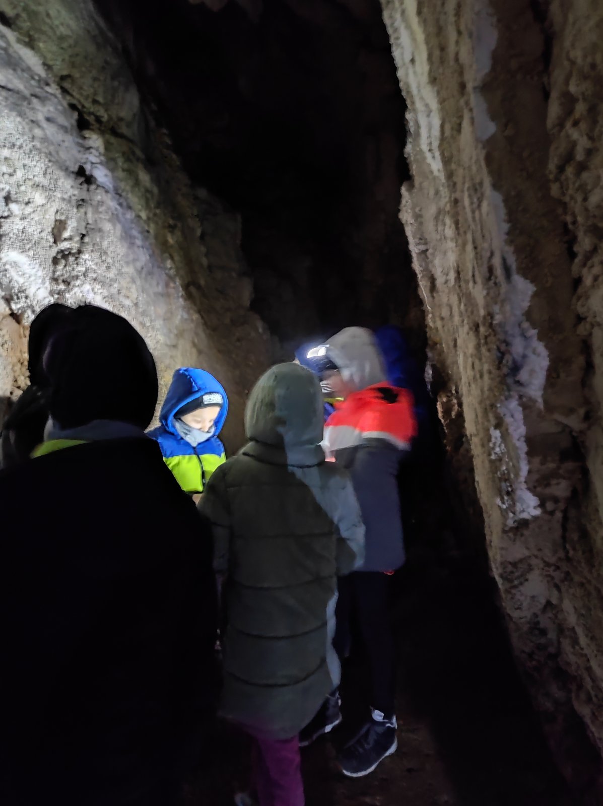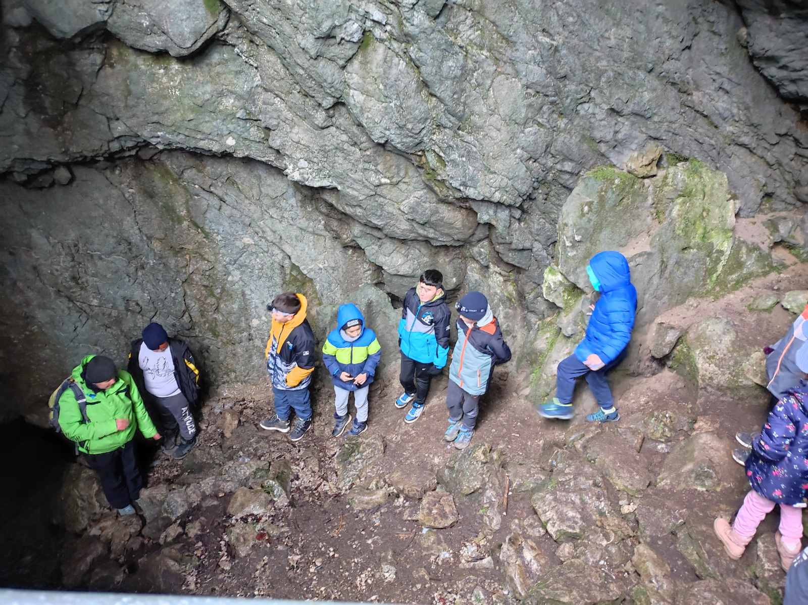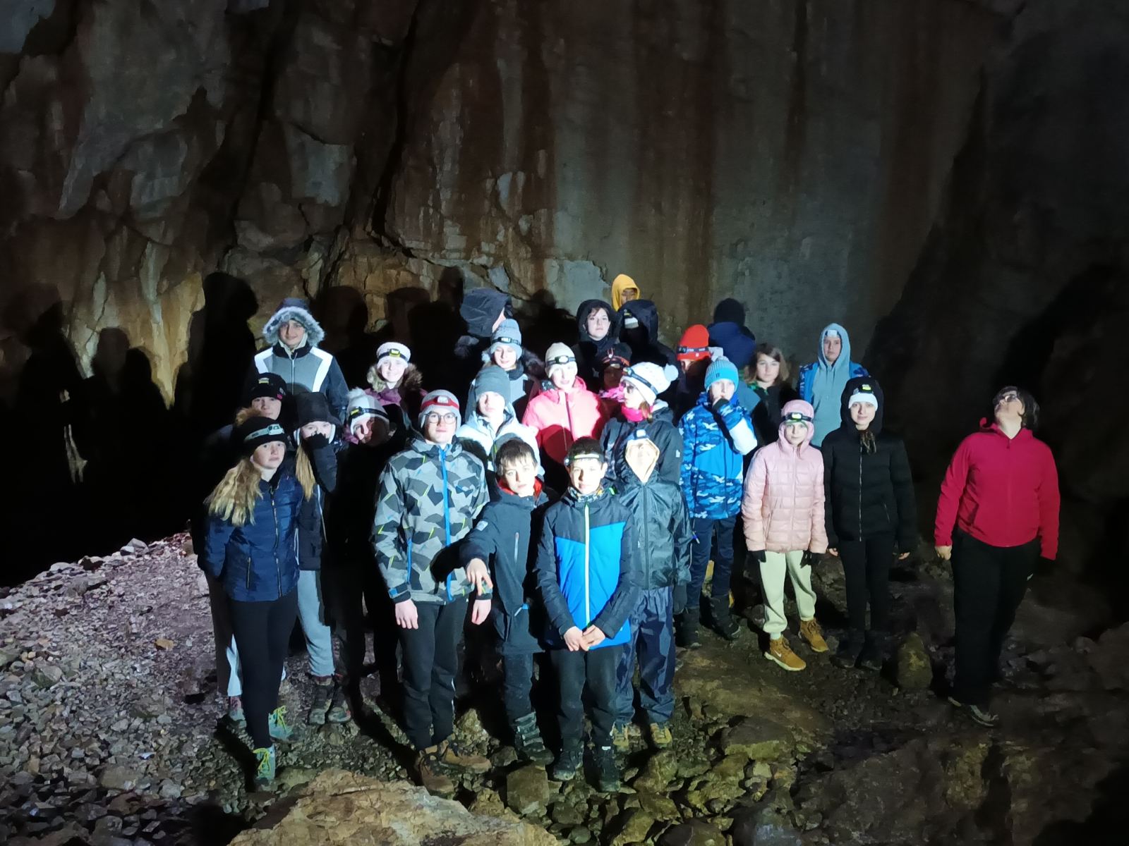 Dopoldne smo obiskali bližnjo Kavkno jamo, približno 100 m dolgo kraško jamo in pri potoku raziskovali vodne organizme.