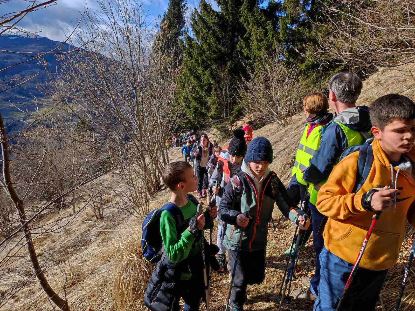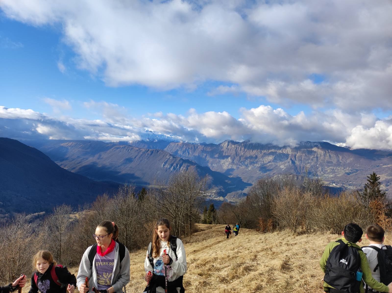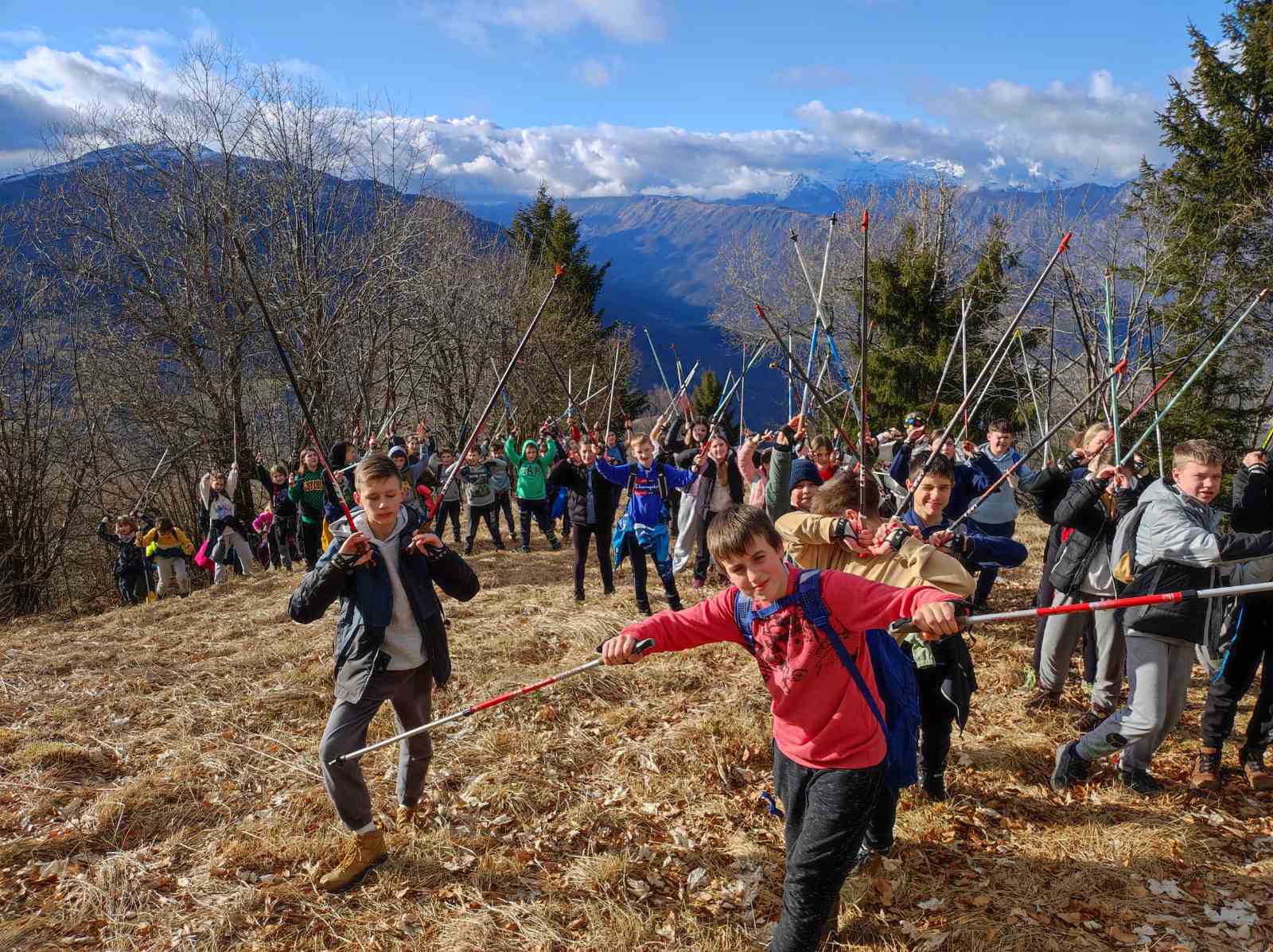 Dobro razpoloženi smo se popoldan odpravili proti 1243 m visokemu Kuku, najvišjemu vrhu Kolovrata, s katerega se odpira lep razgled na Beneško Slovenijo. Tokrat smo si pri pohodu pomagali s palicami za hojo in dobro osvojili dva osnovna koraka nordijske hoje, ki smo se ju naučili pred odhodom. Po vrnitvi s Kuka smo čas namenili debati o šolskem sistemu, temi letošnjega otroškega parlamenta.