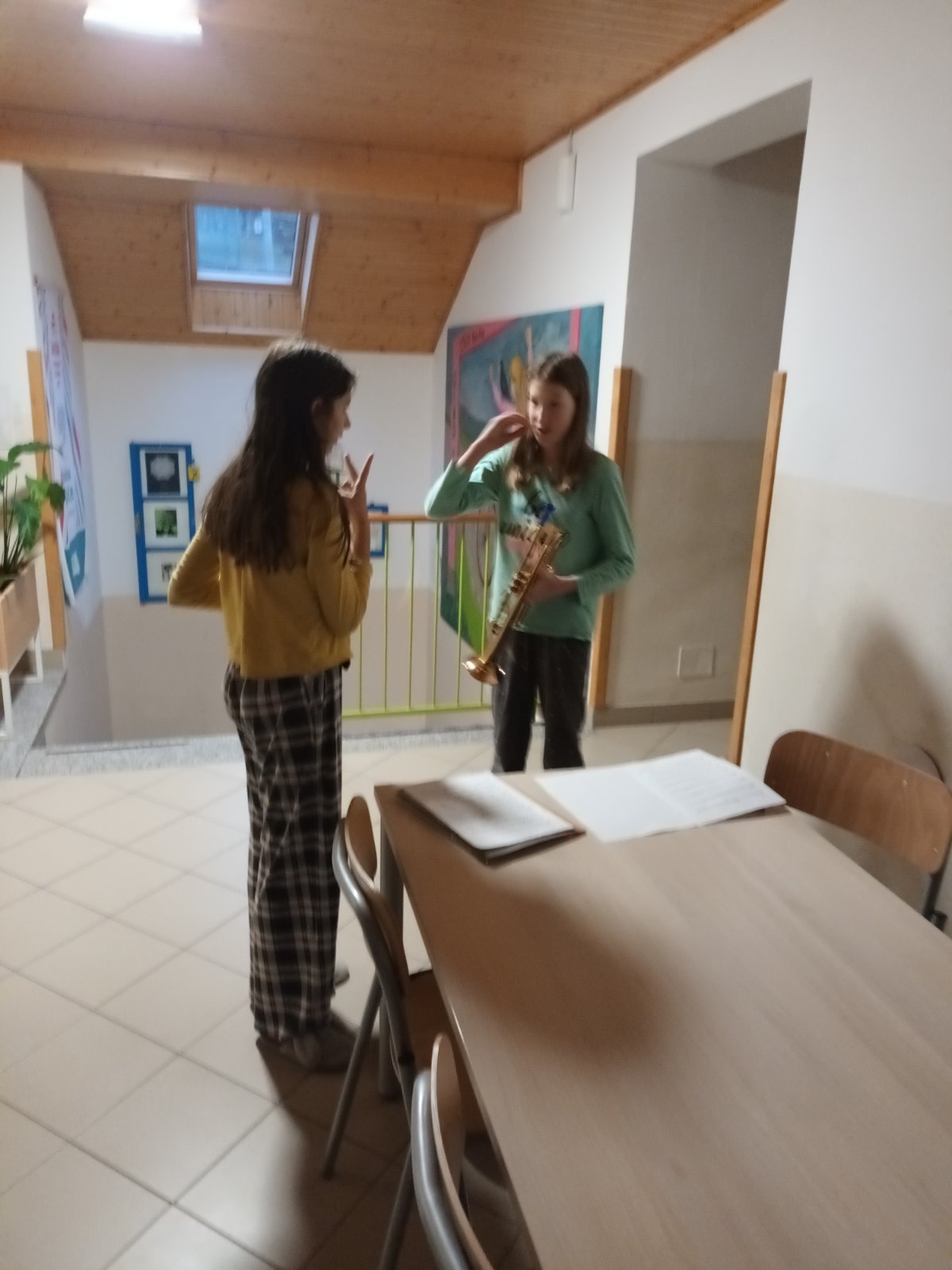 Danes smo imeli prav posebno budnico: Pia in Julija sta nas zbudili z igranjem na svoja inštrumenta.