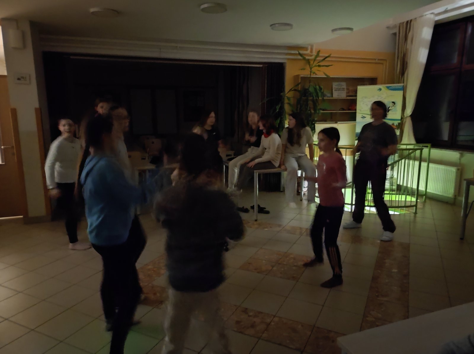 Zvečer smo najprej vsi odigrali igro med dvema ognjema, sledile so še tekme v nogometu in košarki, dekleta pa smo se odločila za ples. Učiteljica Nadja je prijazno vrtela glasbene želje po našem izboru.