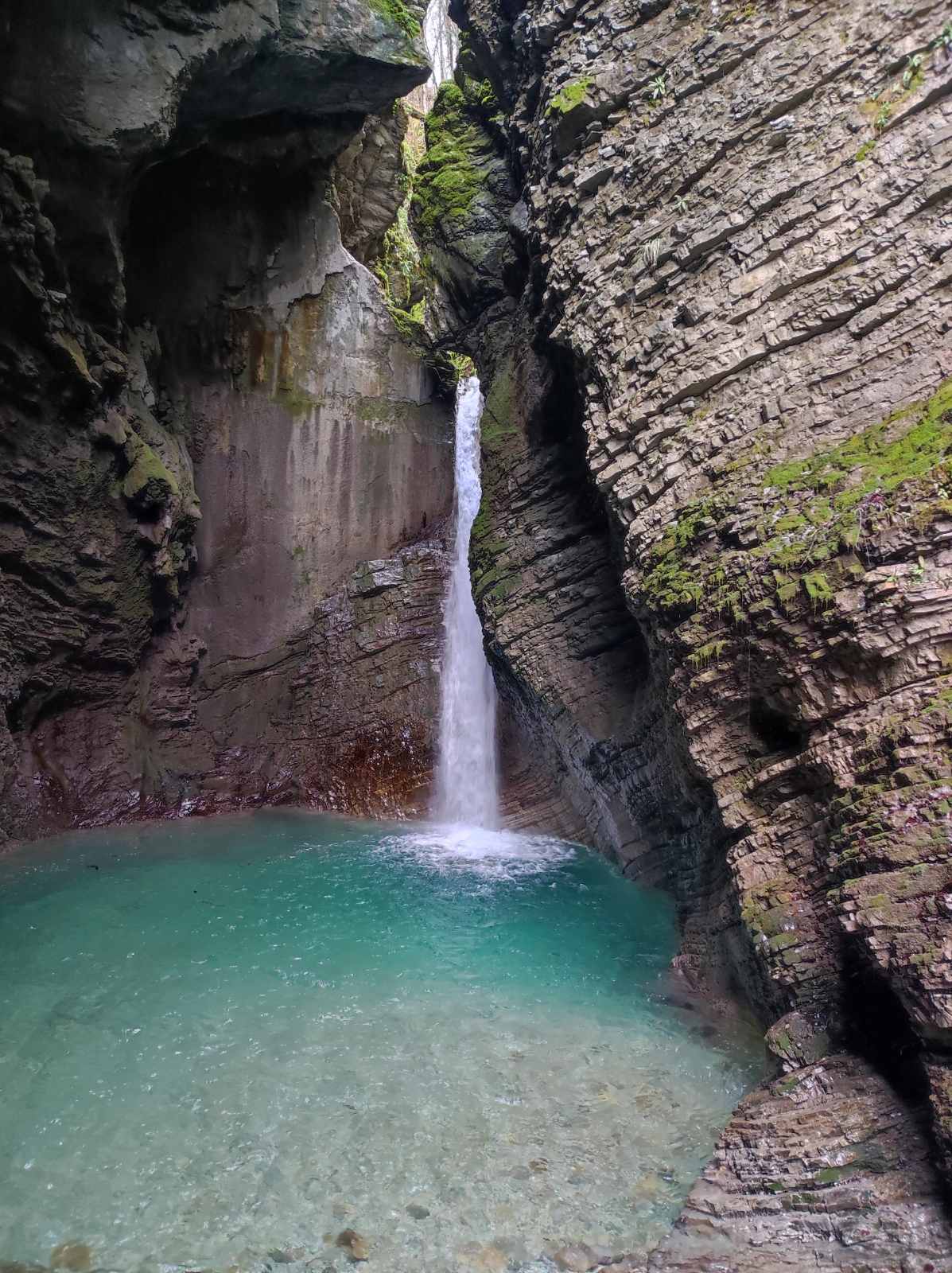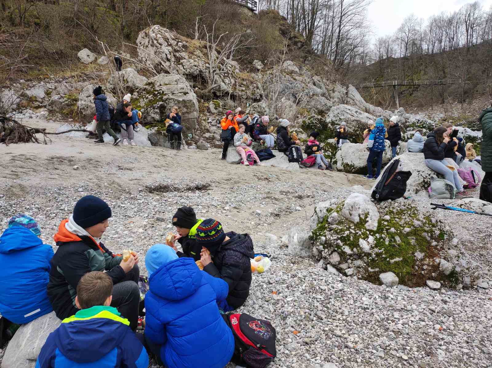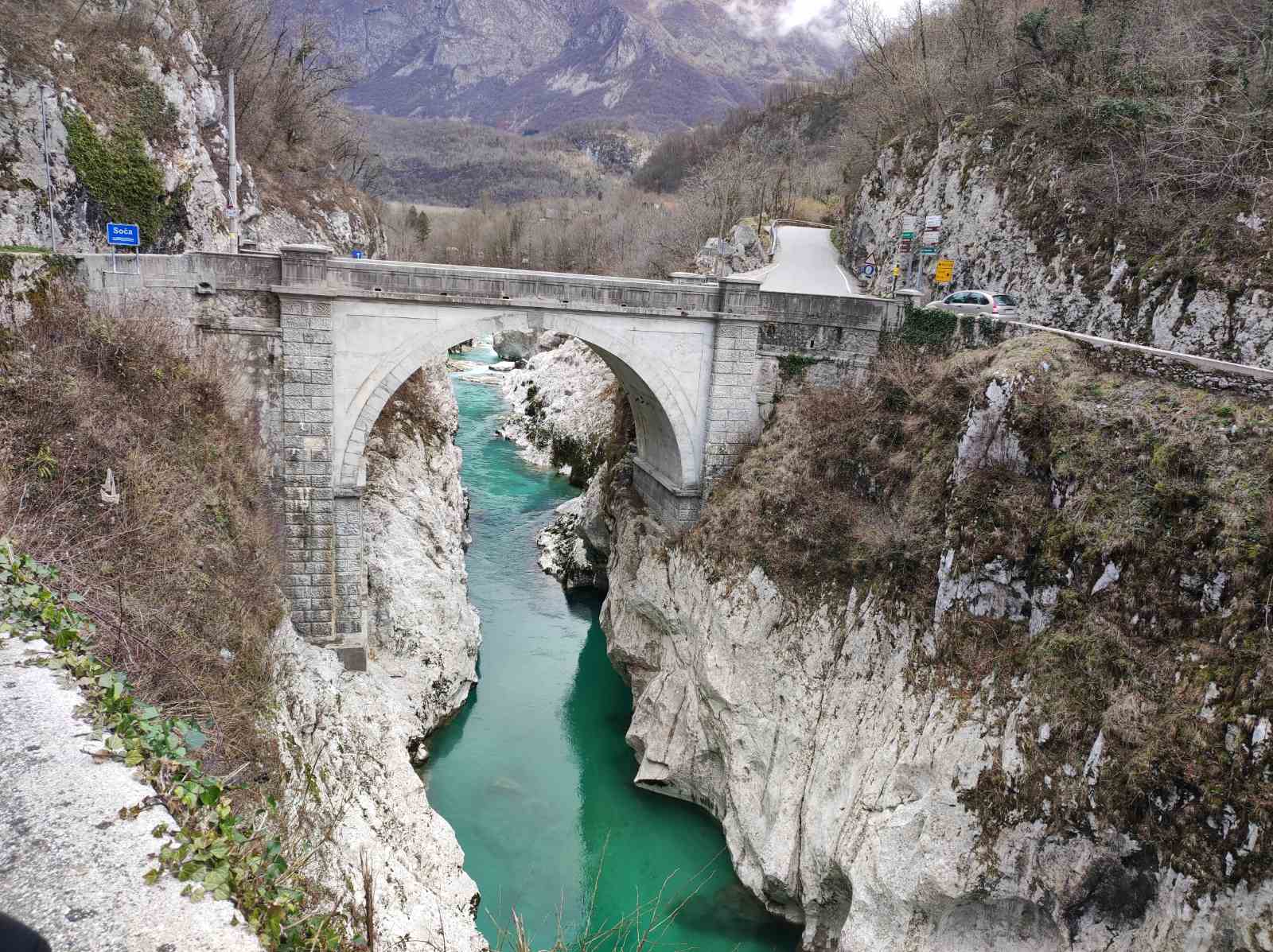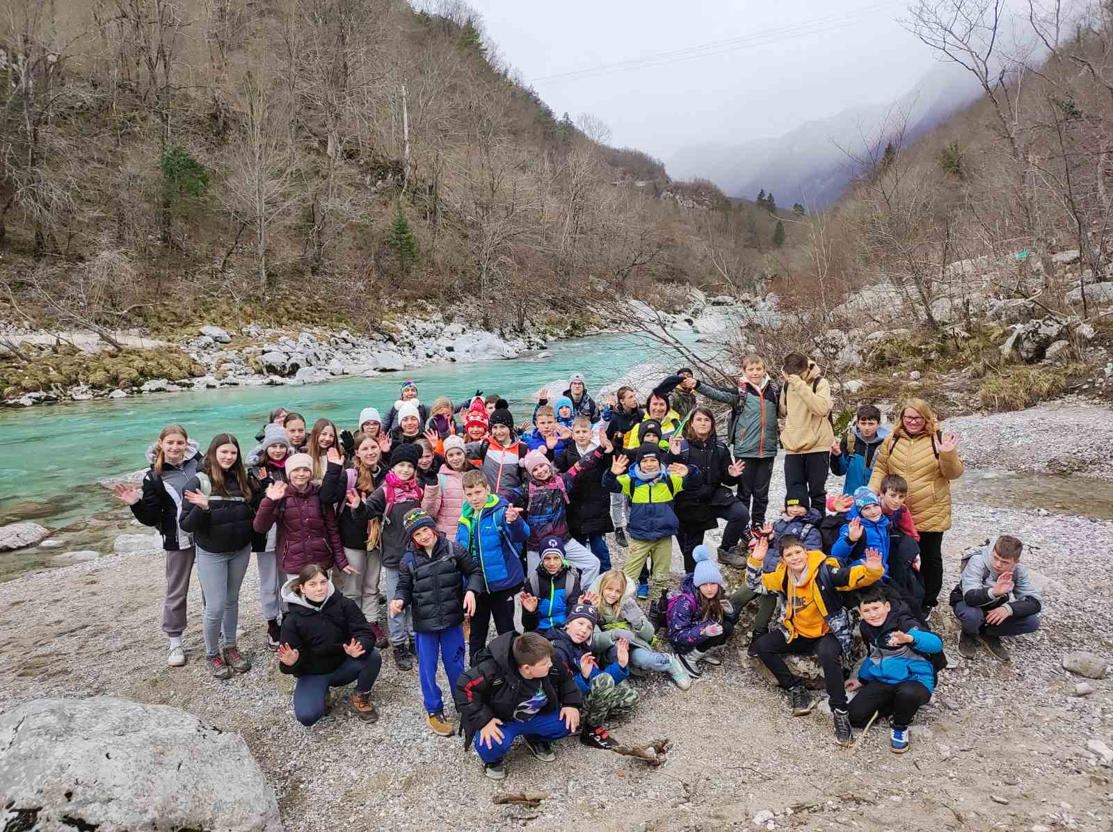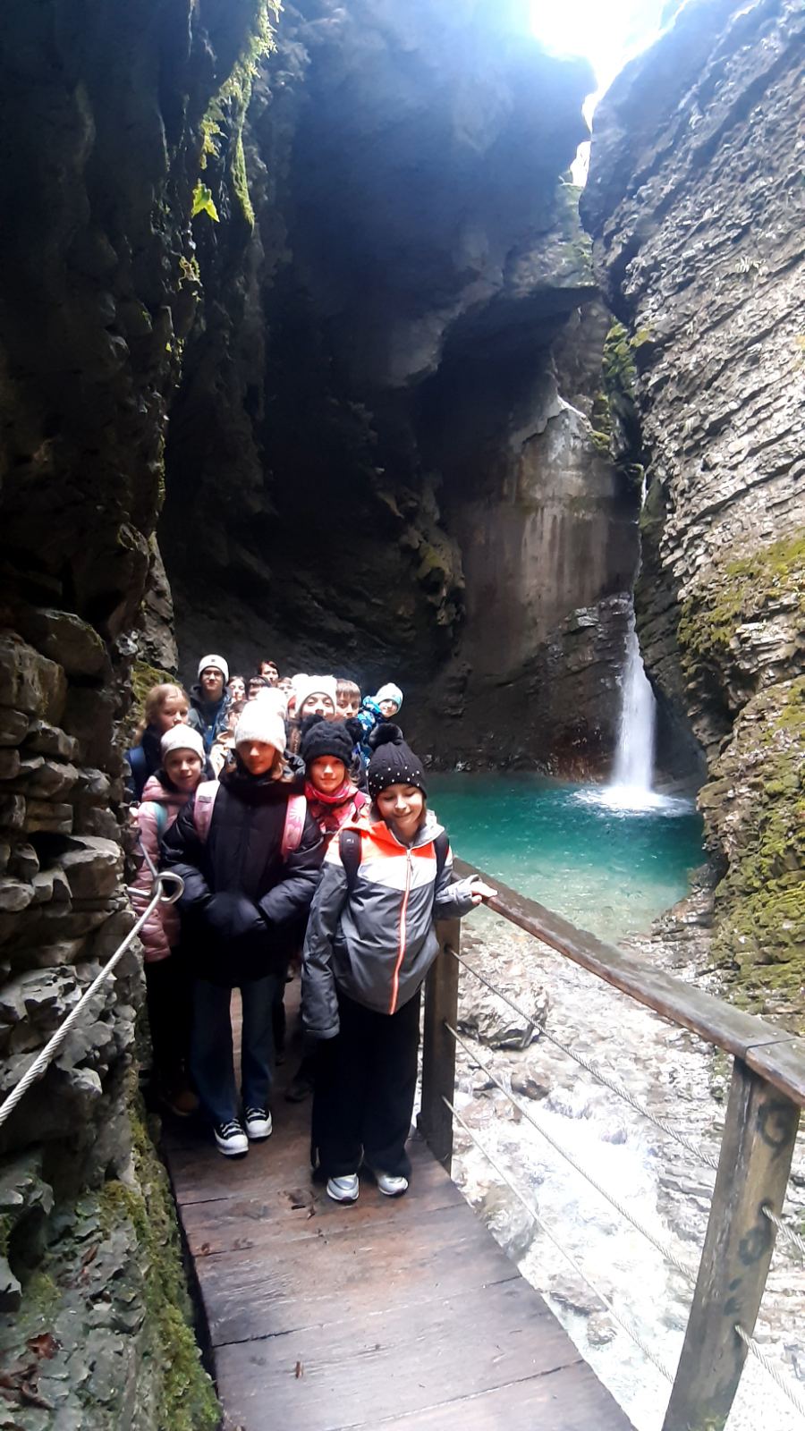 Ob 9. uri smo se z avtobusom odpeljali proti Kobaridu. Sprehodili smo se čez Napoleonov most do slapa Kozjak. Nekoliko smo se zadržali še na bregu reke Soče in občudovali njeno smaragdno barvo.