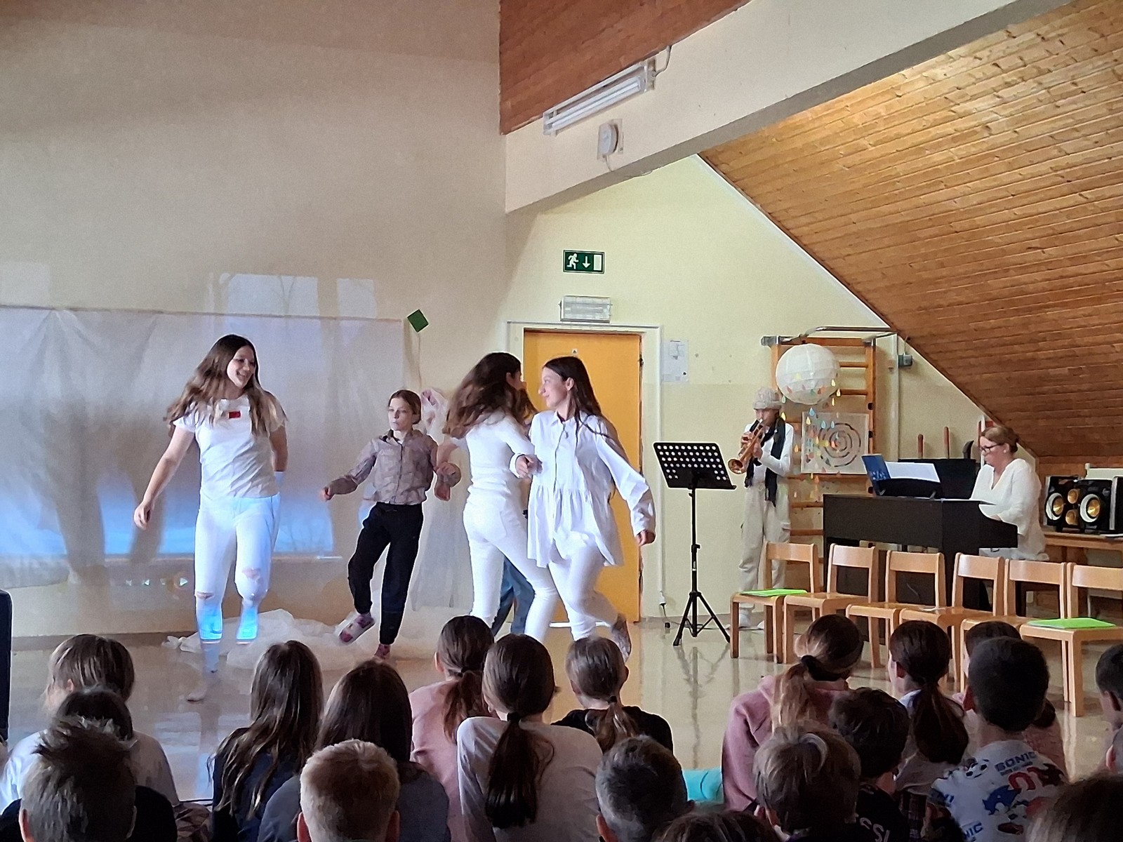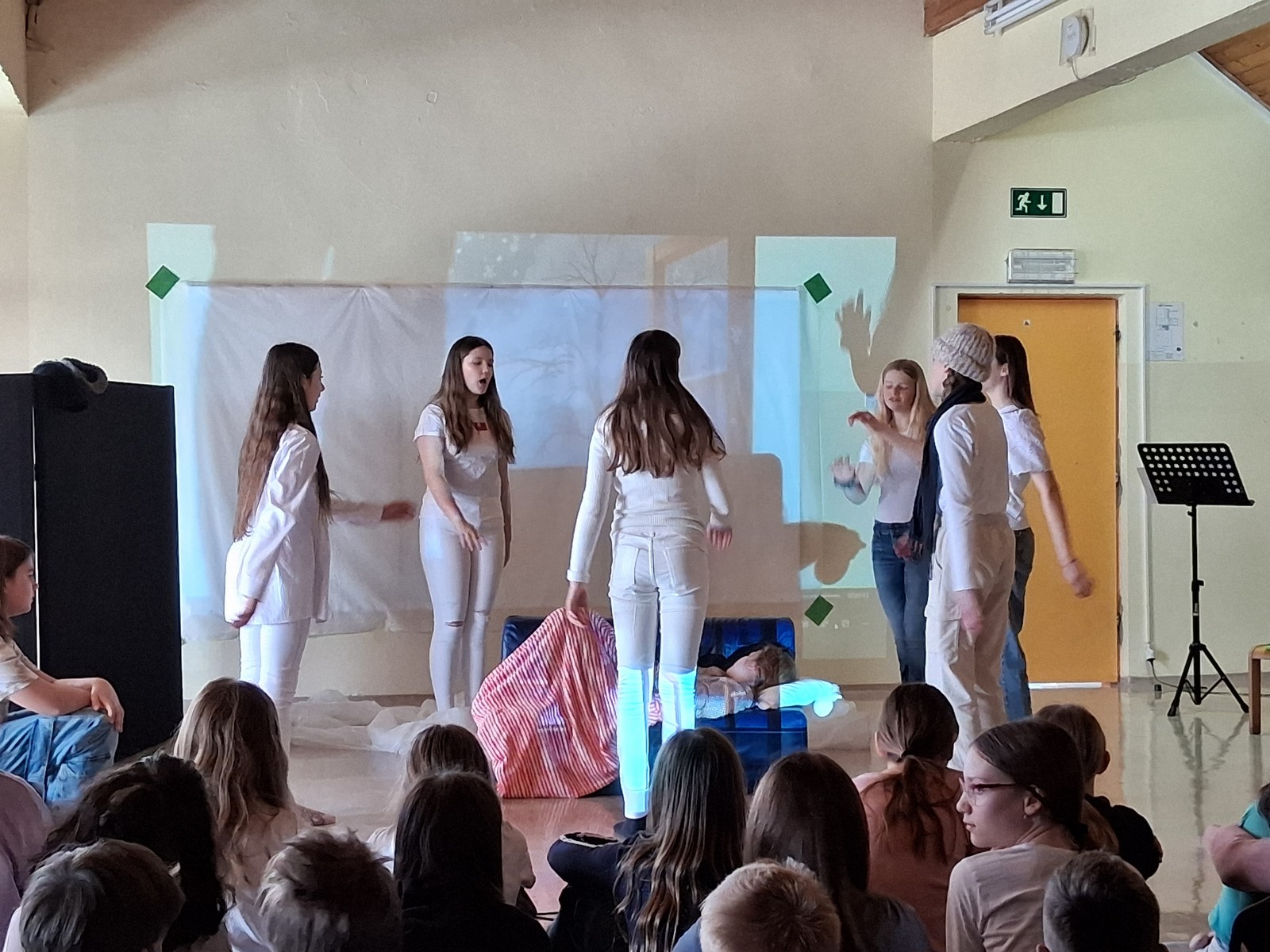 Učenci ustvarjalnega krožka 7. A & B so po zgodbi R. Briggsa The Snowman pripravili glasbeno-scensko predstavo.