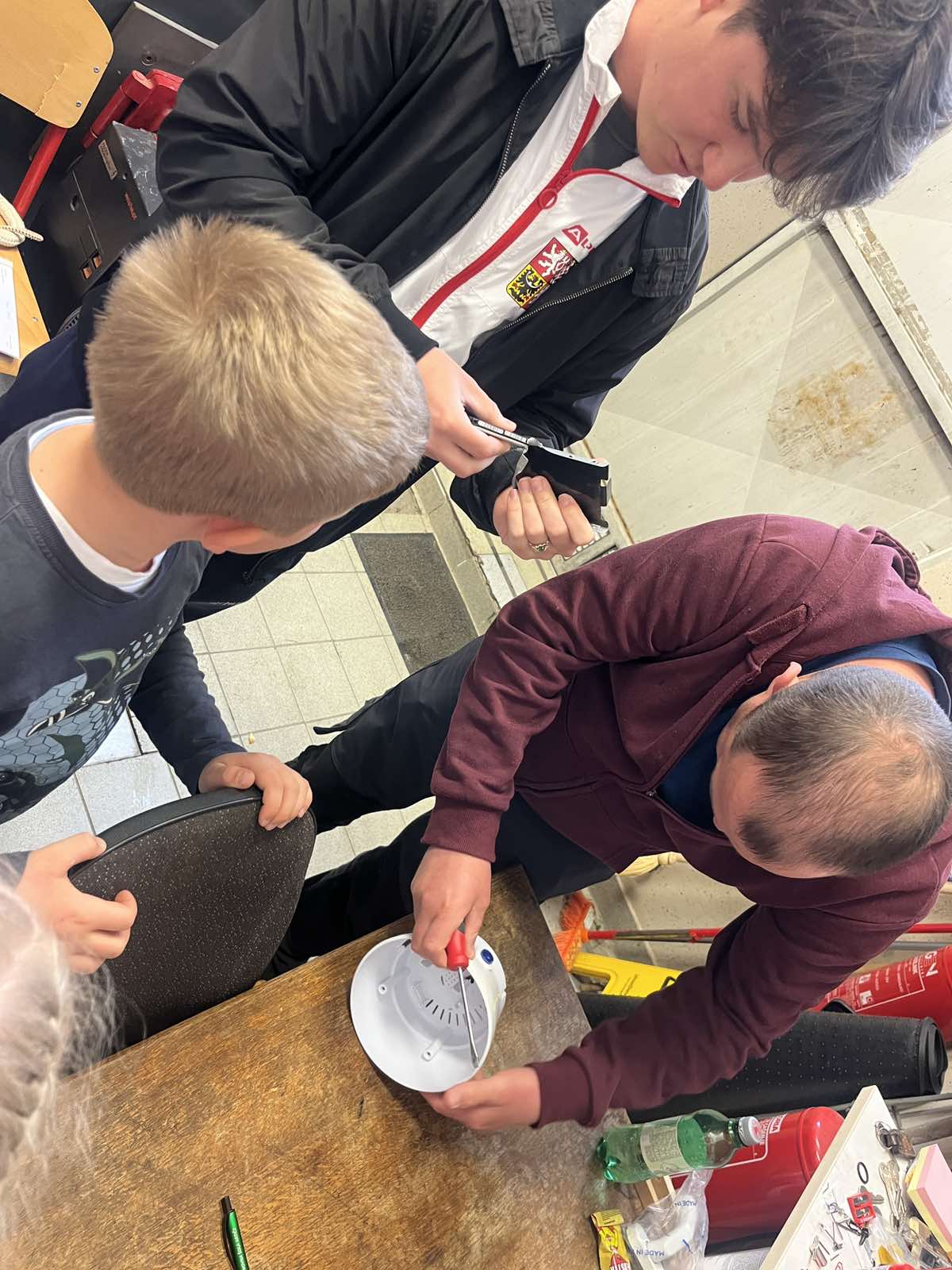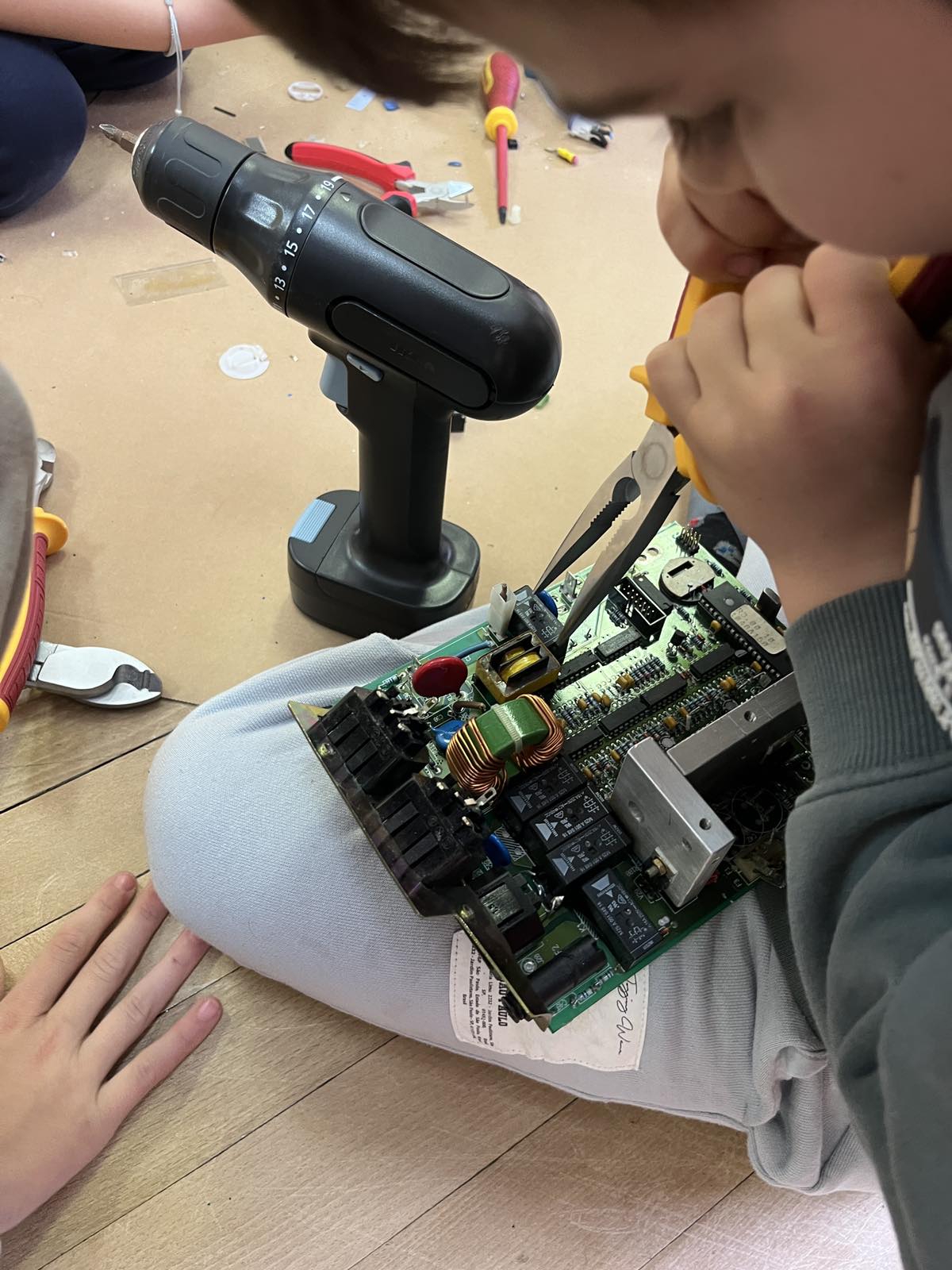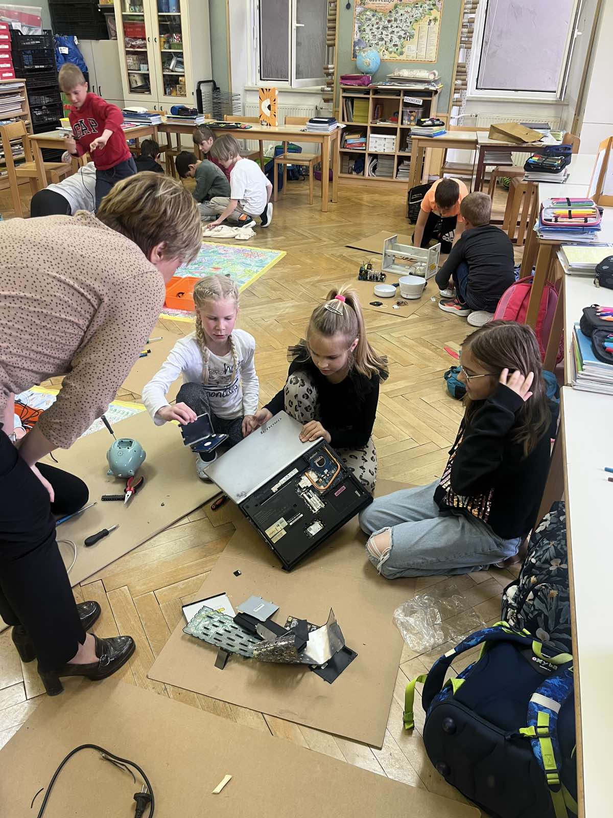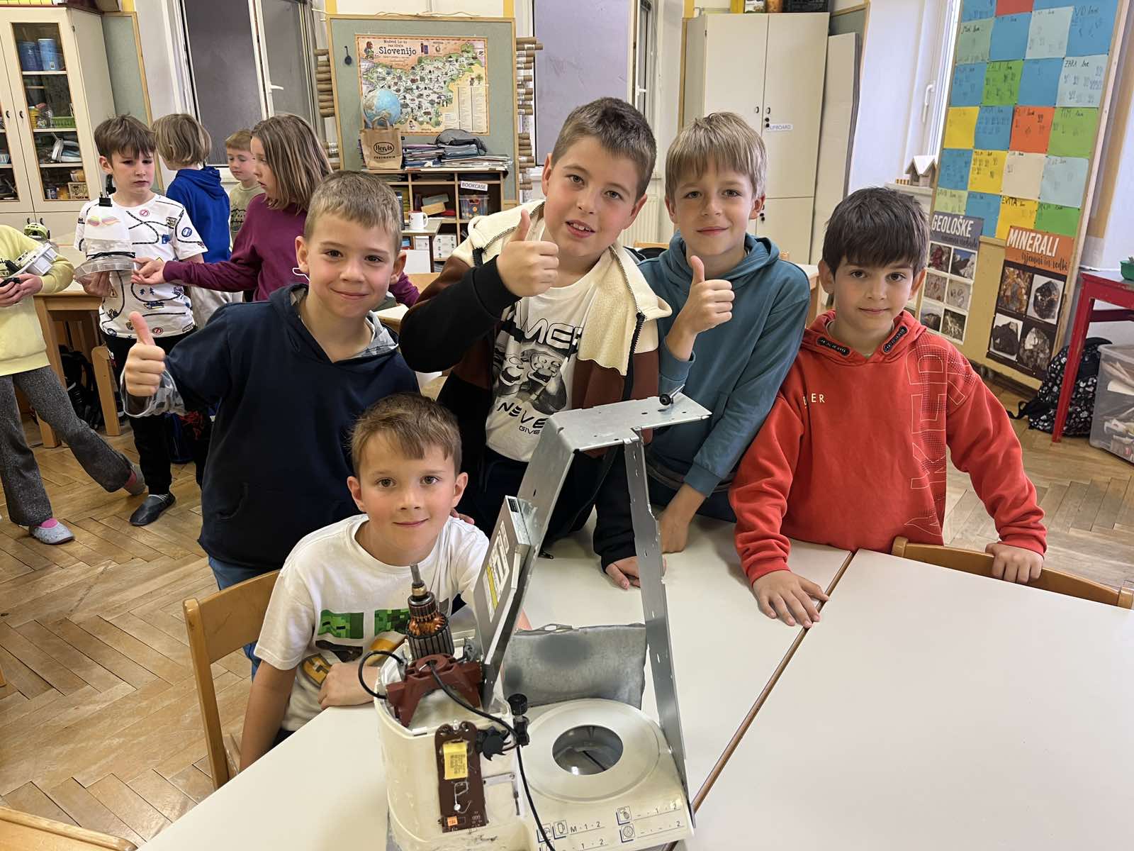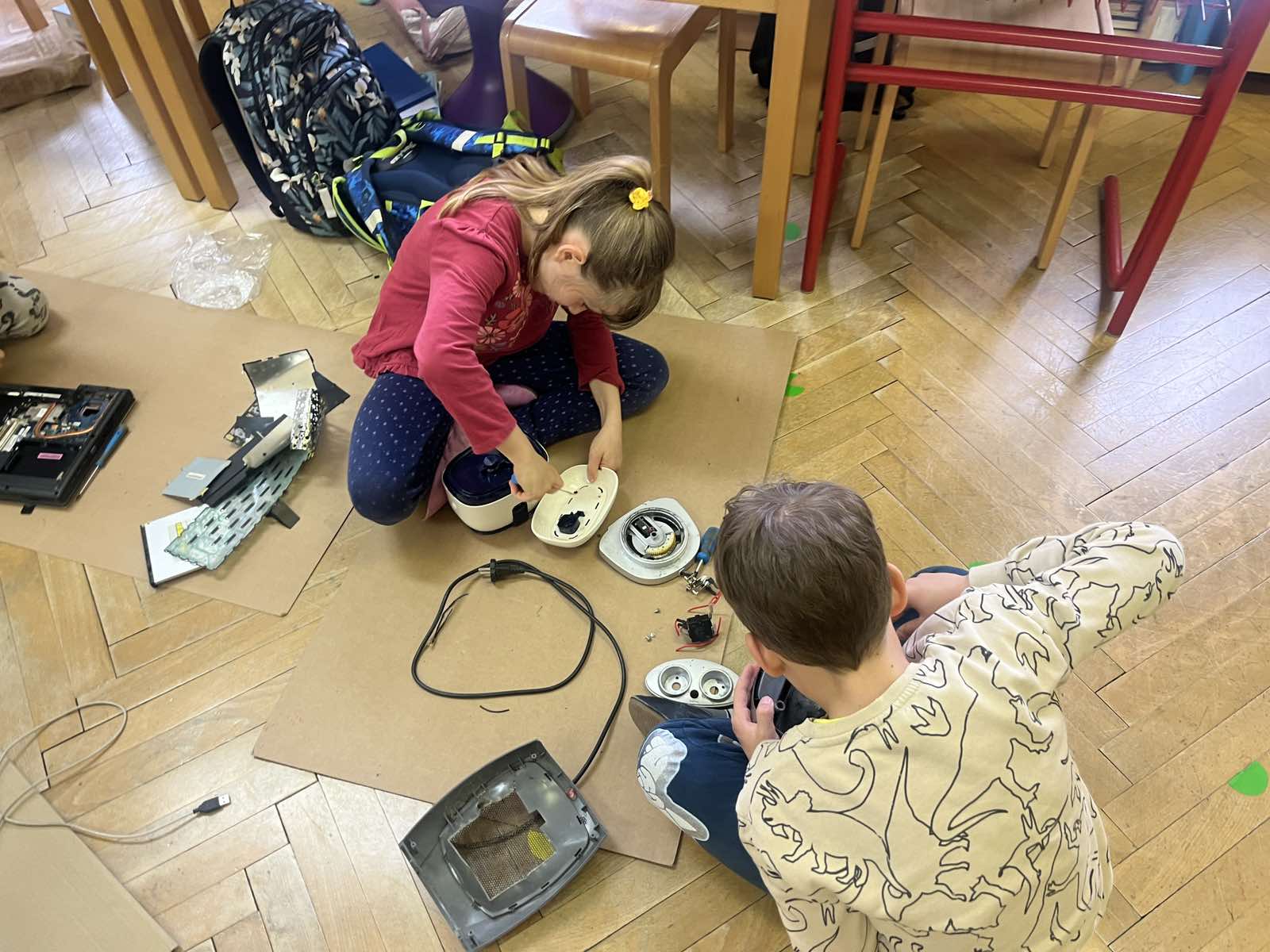 Na tehniškem dnevu smo razstavili vse naprave in njihove delčke sortirali po podobnosti: vijaki skupaj, žice skupaj, majhni plastični delčki skupaj, ohišja...