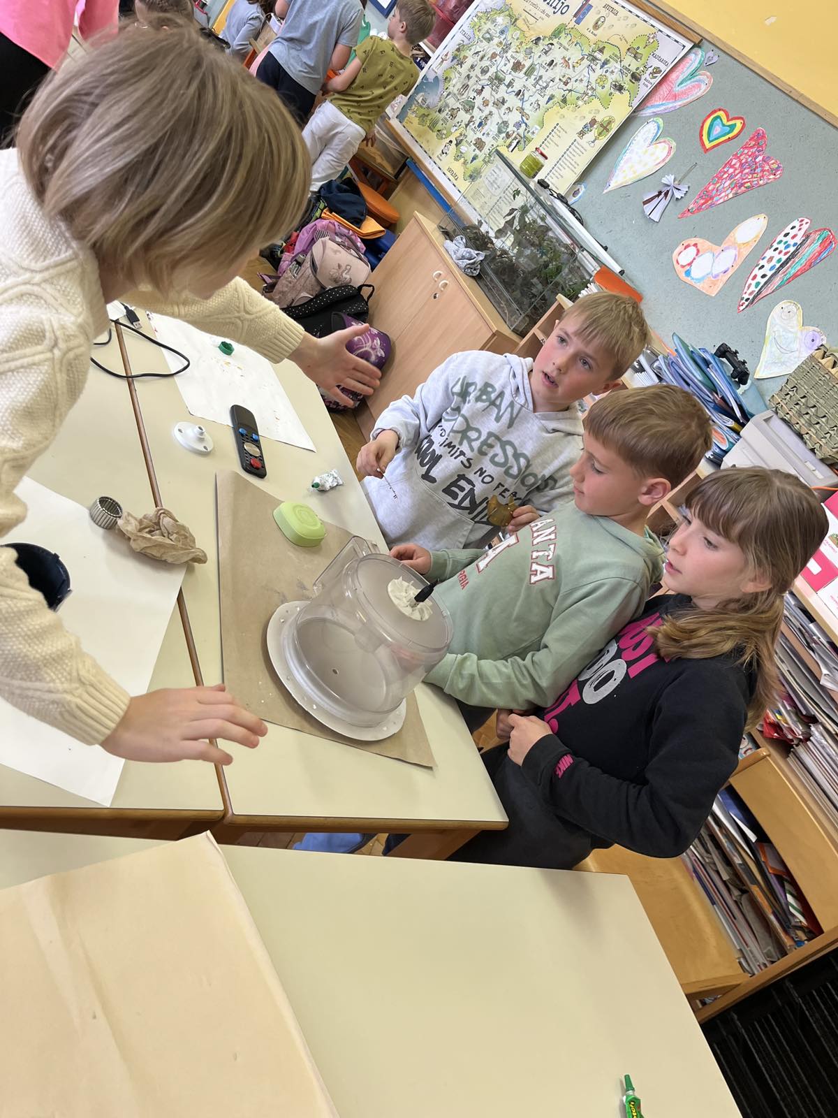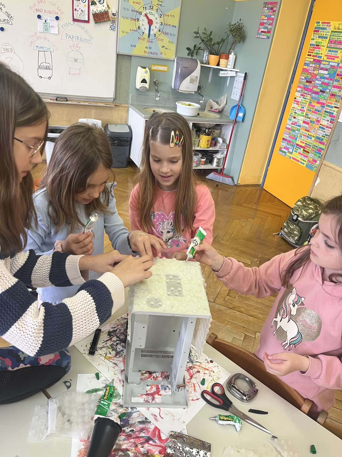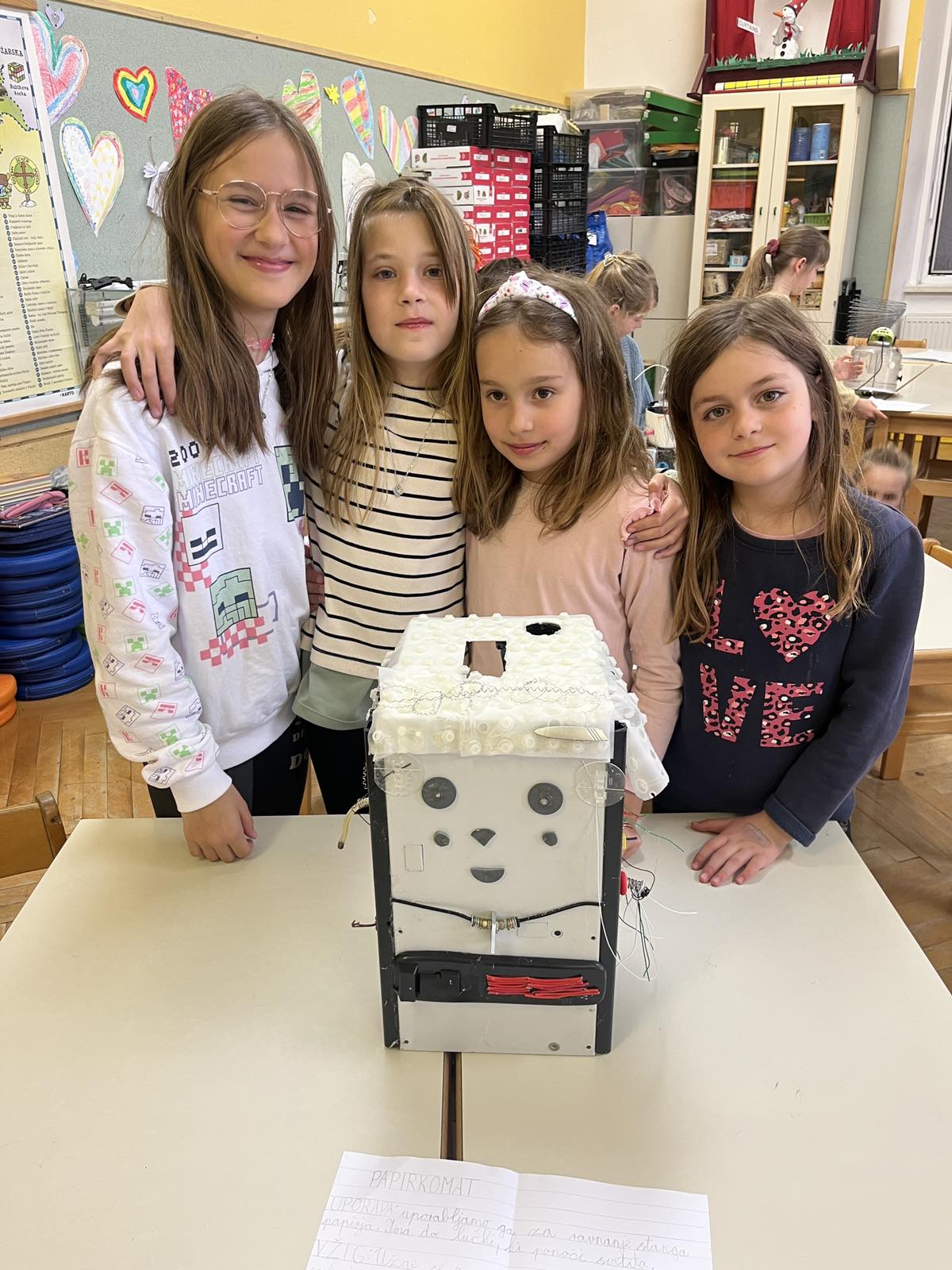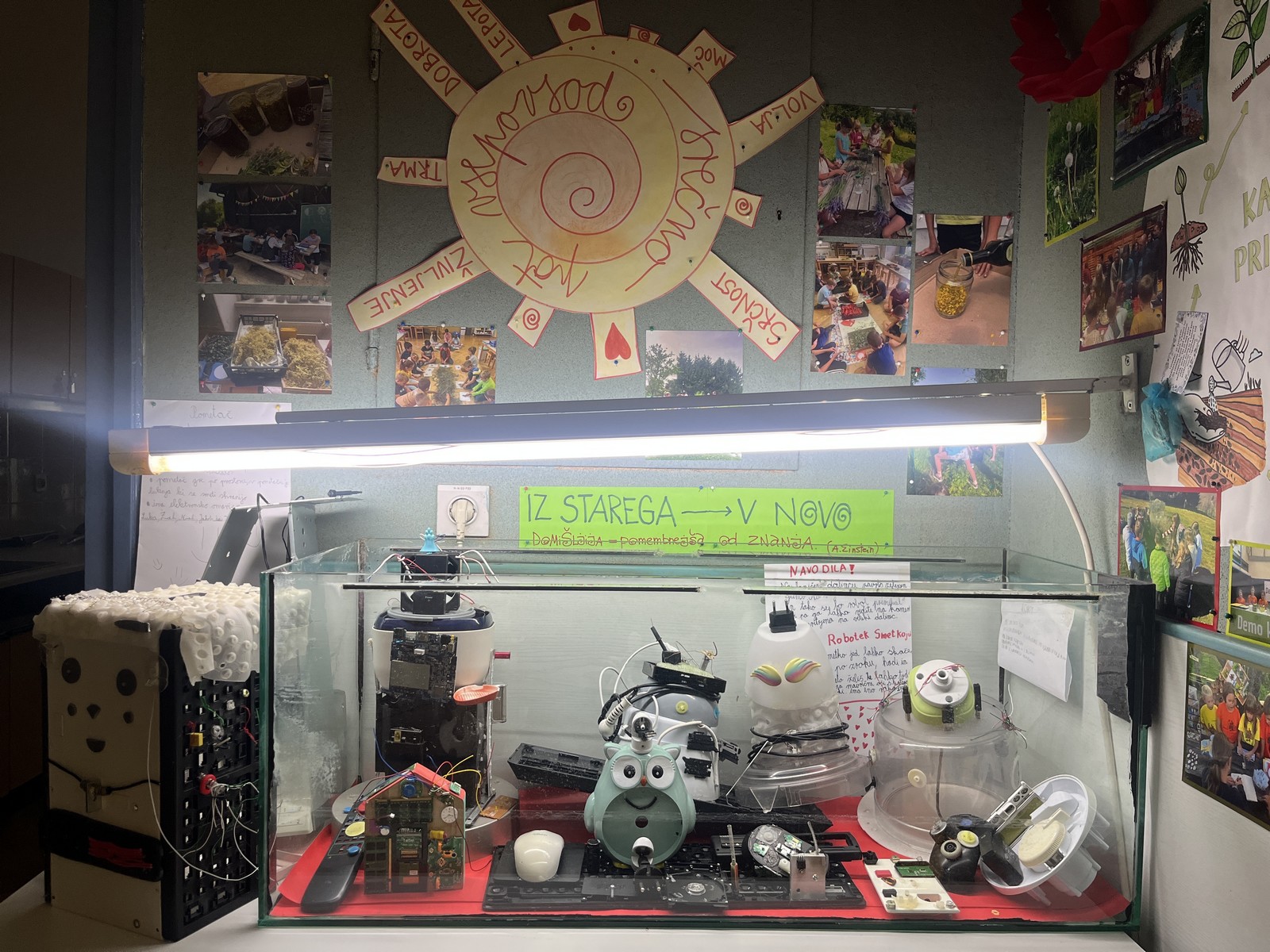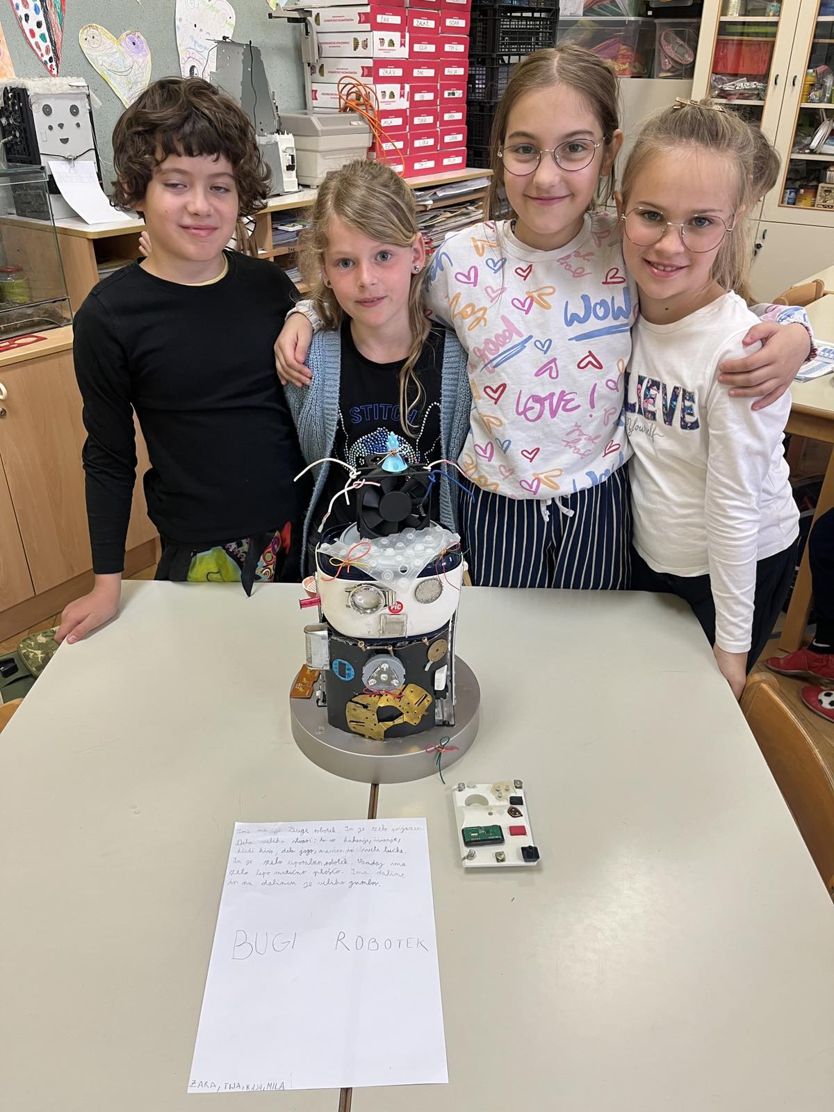 Učenci so izoblikovali Pometača, Papirkomata, Smetka 3001, Robot Bugi, Solarno hiško, Smetkojeda in Novi računalnik.