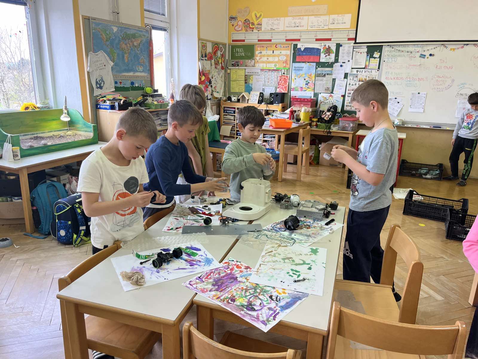 V šestih urah likovne umetnosti smo skreirali idejne načrte robotkov, se razdelili v skupine po interesih in izdelali naprave prihodnosti.