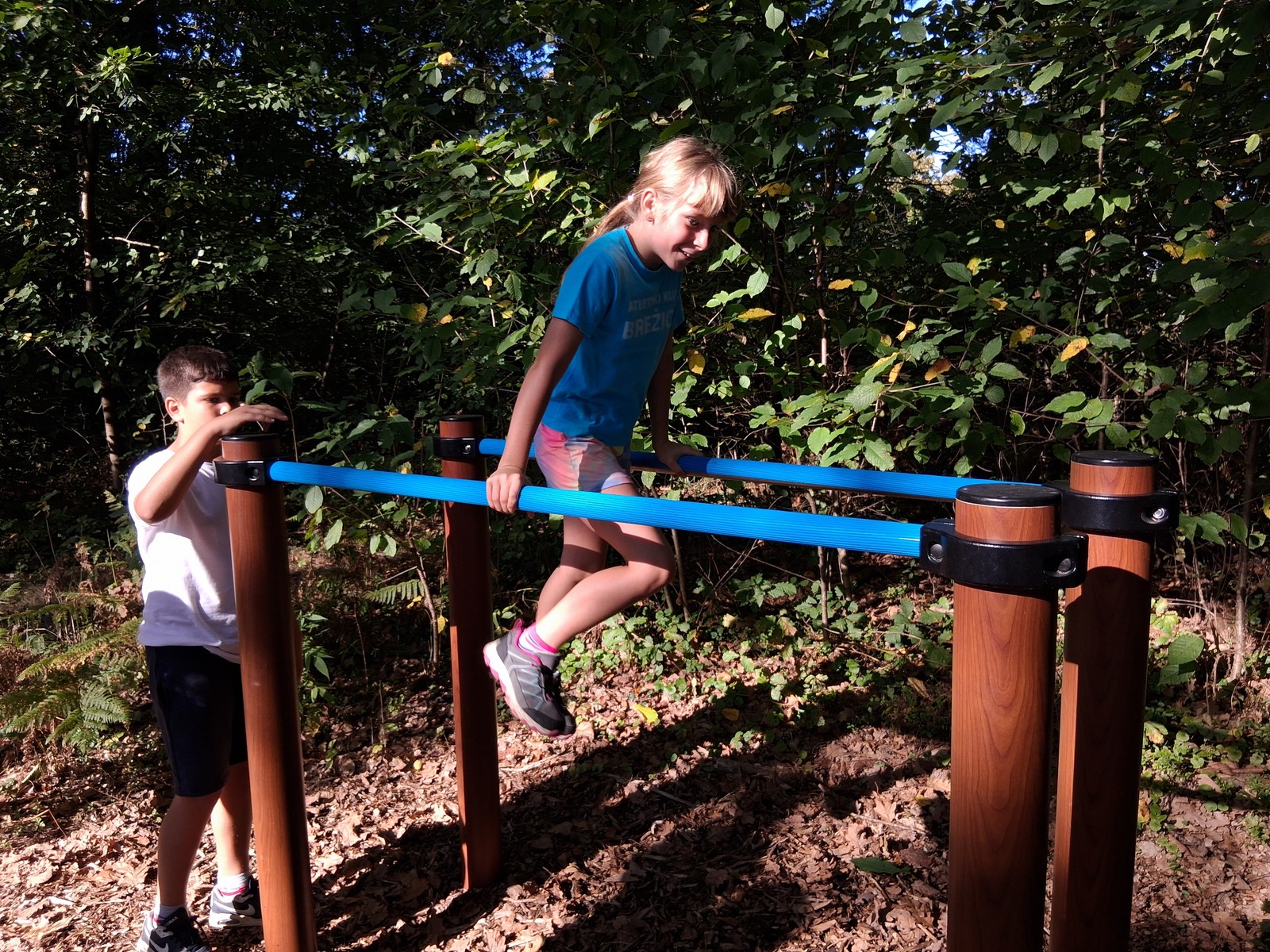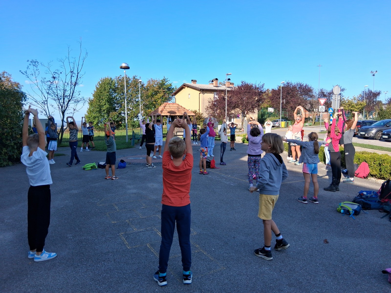 Po jutranjem ogrevanju z glasbo in angleščino smo odšli na postaje z vadbenimi napravami. Pot smo nadaljevali do velike bukve, po njej so se spretni plezalci povzpeli v krošnjo. Od višine se nam ni zvrtelo.