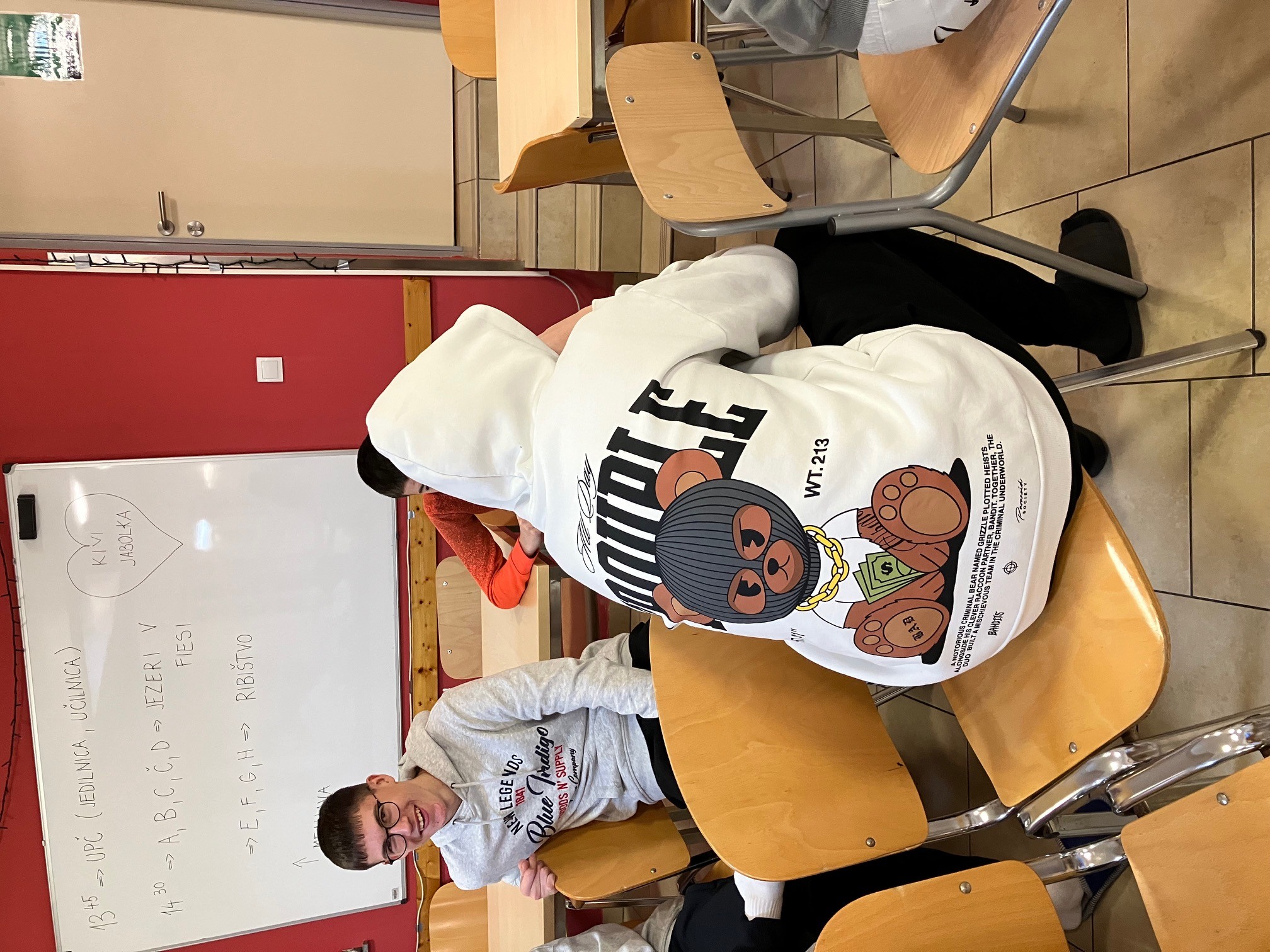 Sledil je obisk Pirana, kjer smo se ustavili na določenih strateških točkah in prisluhnili razlagi učiteljev, za konec pa še malce uživali v prostem času. Včerajšnji dan je bil precej burjast, zato je marsikdo med njimi, ki ni poslušal navodil, da se je treba dobro obleči in obuti, občutil, kaj pomeni, če te prepiha do kosti in čez. Ampak burja je zdrava in tako smo zdravi tudi mi. Domov s Pirana se nismo vračali ob obali, temveč po notranjosti, da nas vseeno ne bi preveč prezeblo. Sledilo je kosilo - mimogrede - jemo res dobro in dovolj in kdor bo trdil drugače, je ...