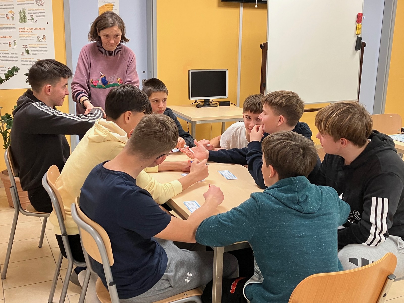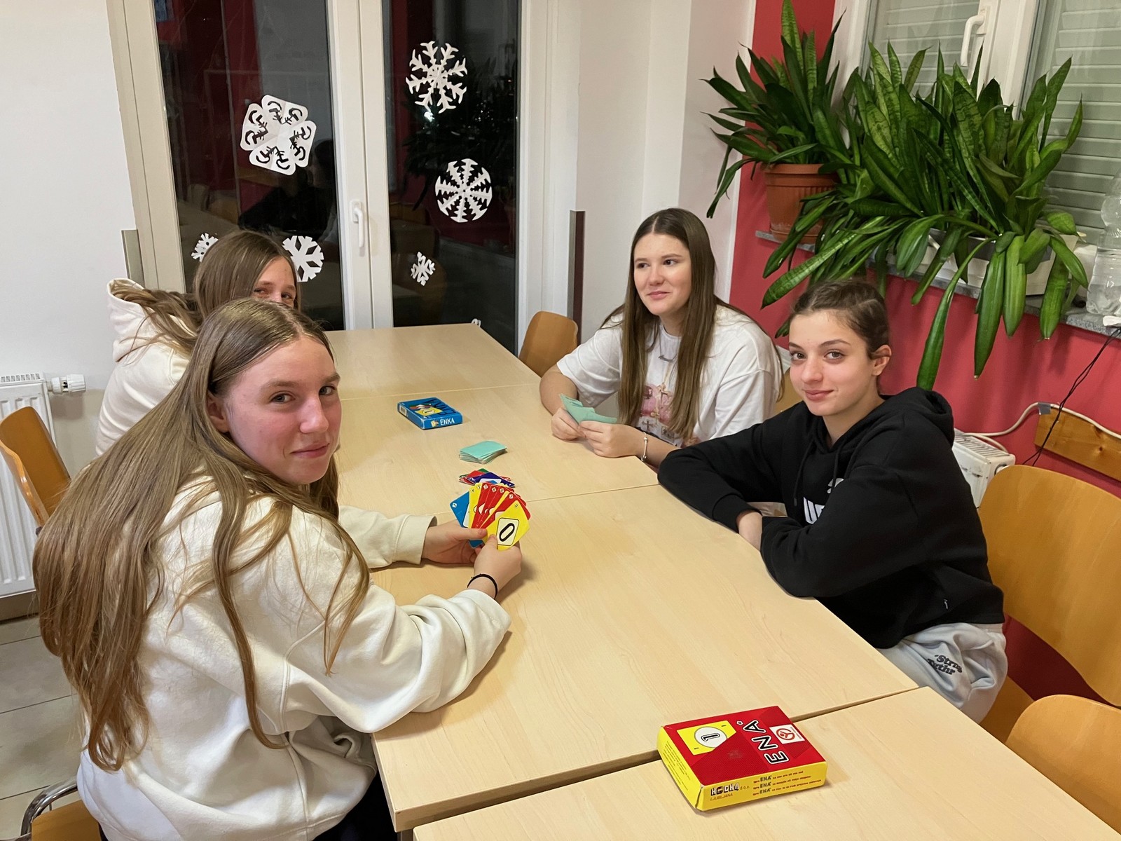 Po večerji smo odigrali tombolo in se podružili ob enki, monopoliju, štrbunku, namiznem tenisu,klepetu ...