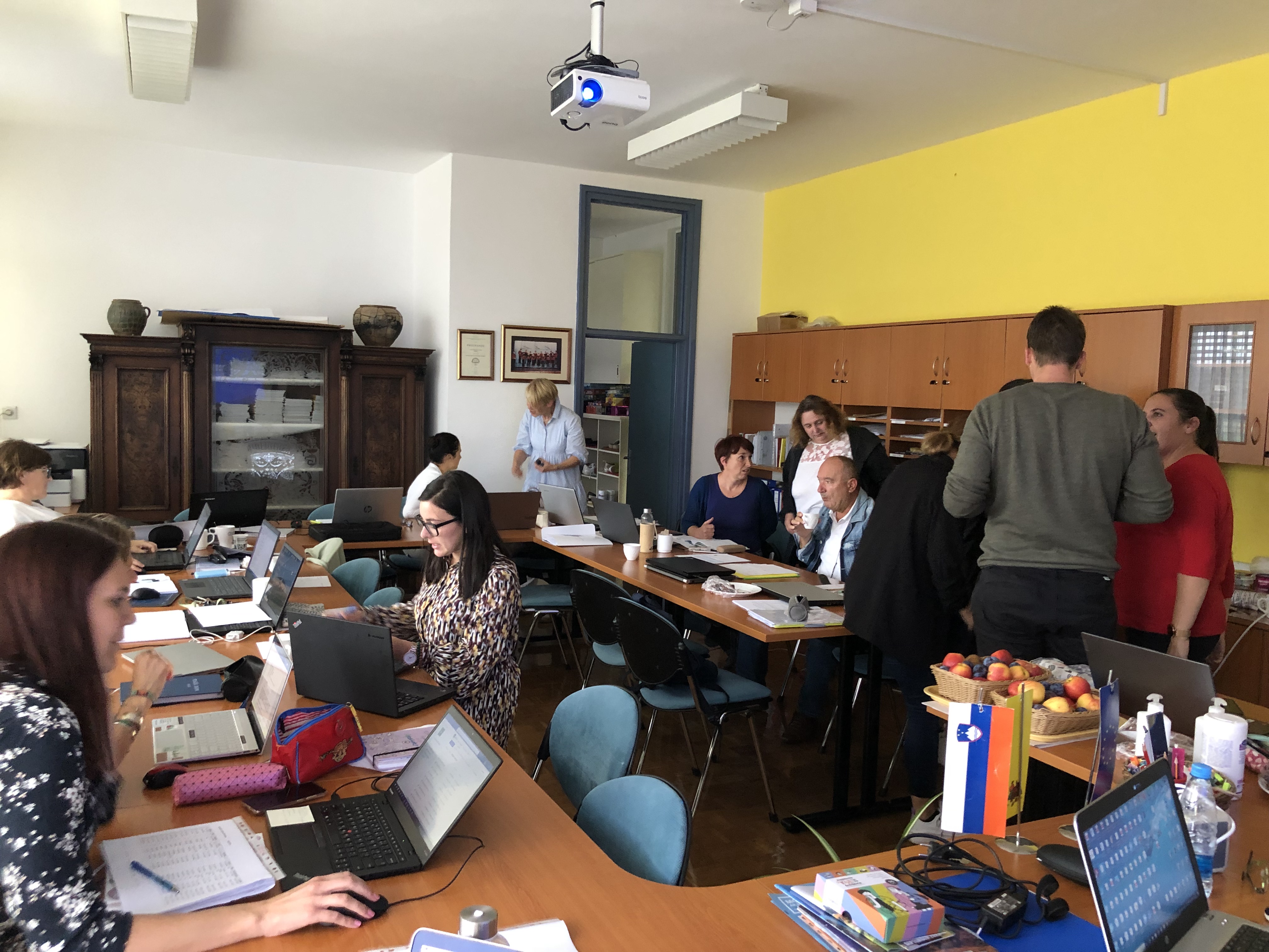 Delavnico sta vodila učitelja Sabina Košir in Vlado Cizl, ki sta predstavila smotrnost ločenega službenega in zasebnega e-naslova. Vsi učitelji smo podatke za vpis v e-poštni predal in AAI račun. Po vpisu smo skupaj pregledali osnovne funkcije, ki so nam na voljo v Arnesovi pošti in se z njimi naučili tudi opravljati. Sledila je razlaga digitalnih identitet in prikaz upravljanja z njimi.